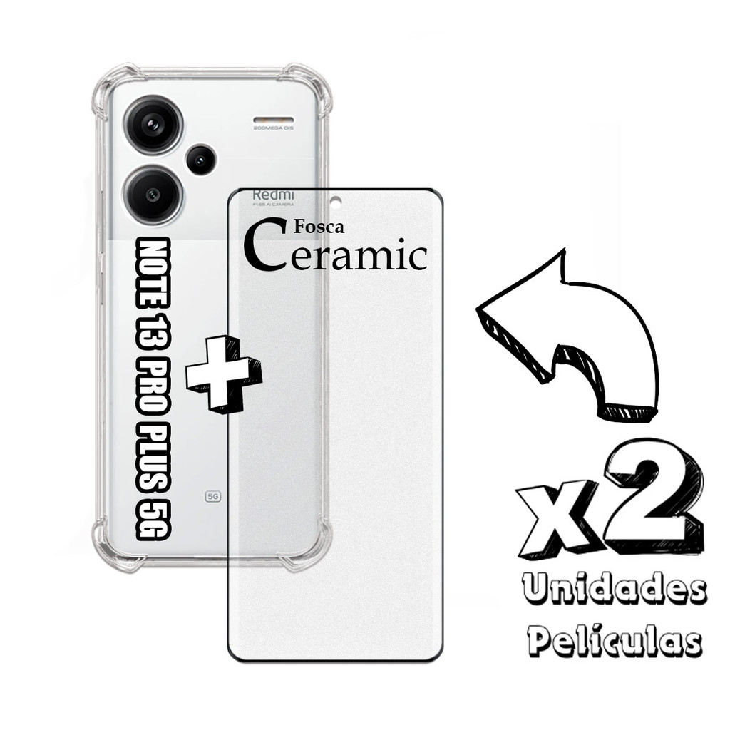 KIT Para Xiaomi Redmi Note 13 Pro Plus- Película Fosca de Cerâmica 9D + Capa + Câmera