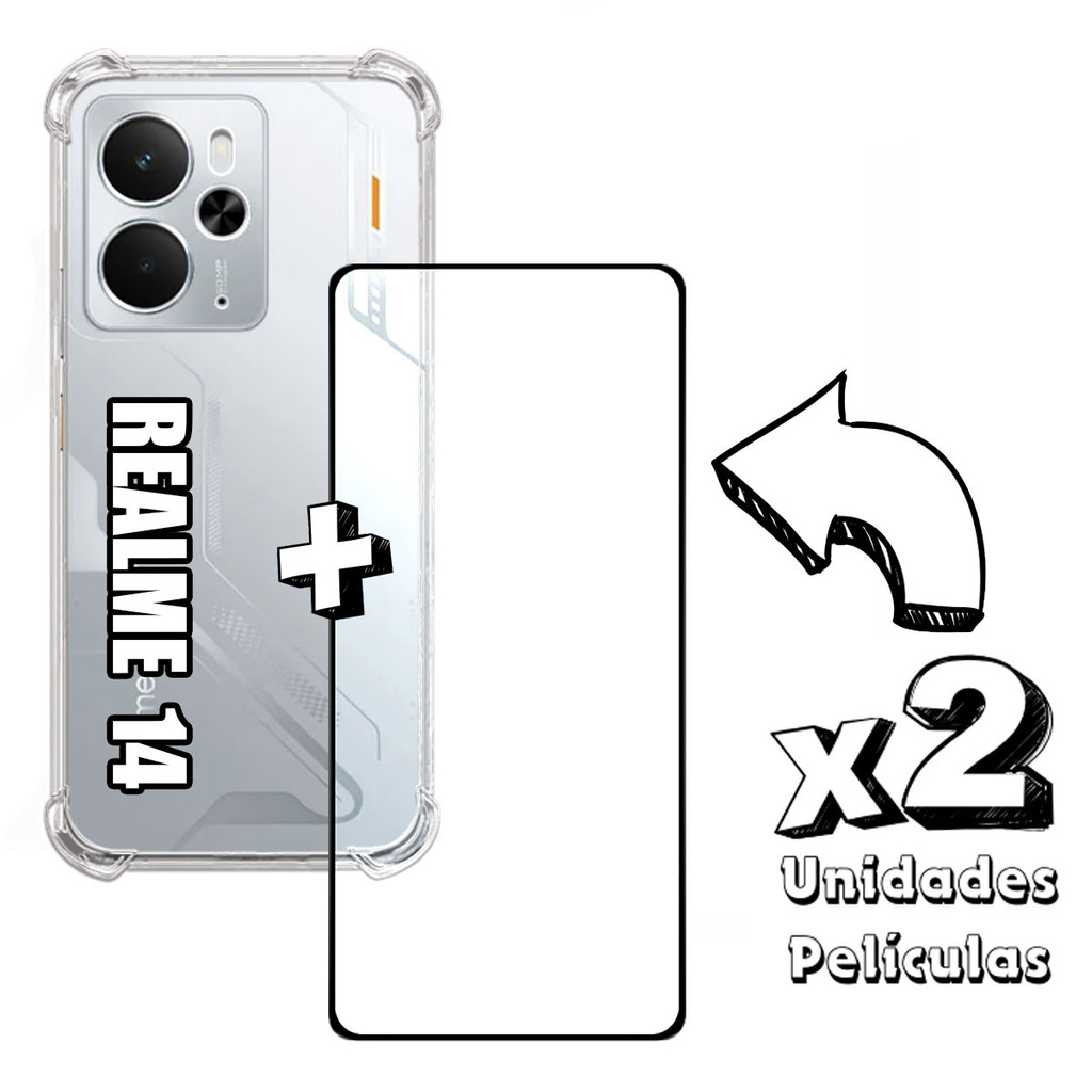 KIT Para Realme 14 - Película de Vidro 3D + Capa + Câmera