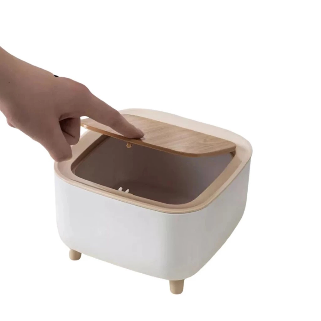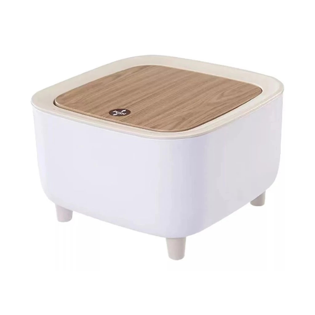 Mini Lixeira Com Tampa de Pressão Com Pés de Madeira 2L