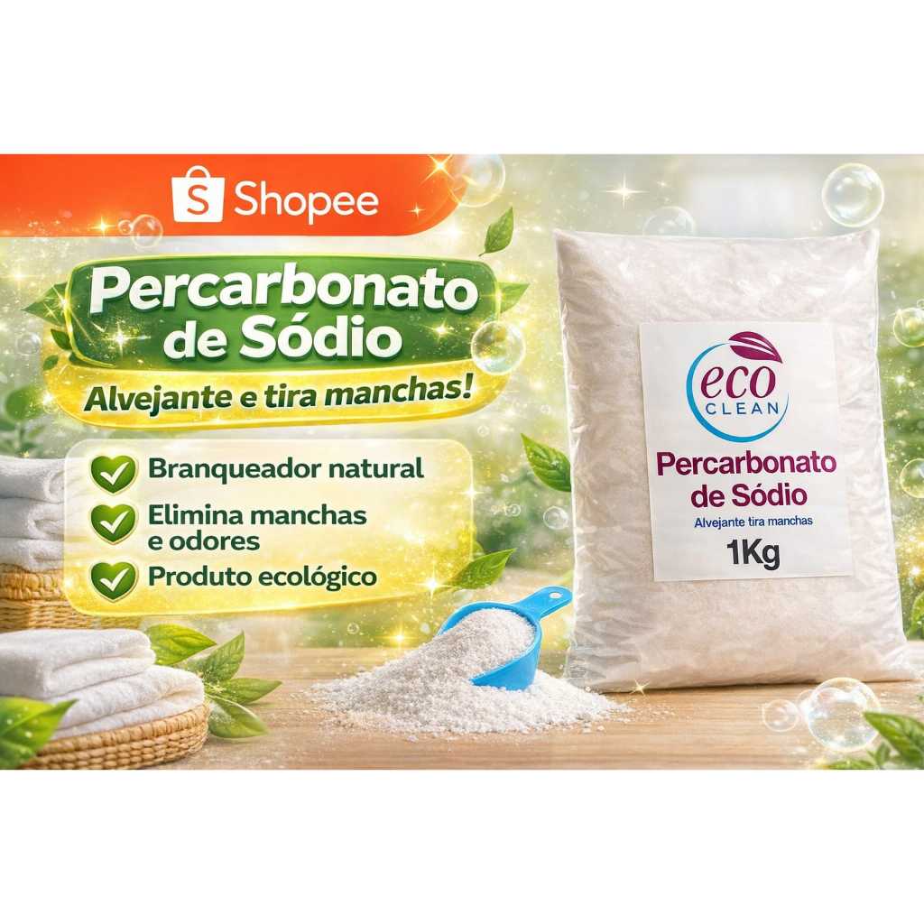 Percarbonato de Sódio 100% Puro Limpeza Em Geral Tira Manchas Roupas Brancas 500g/1kg /2kg