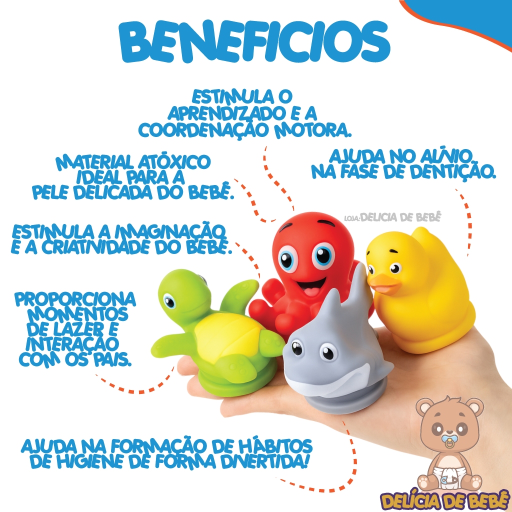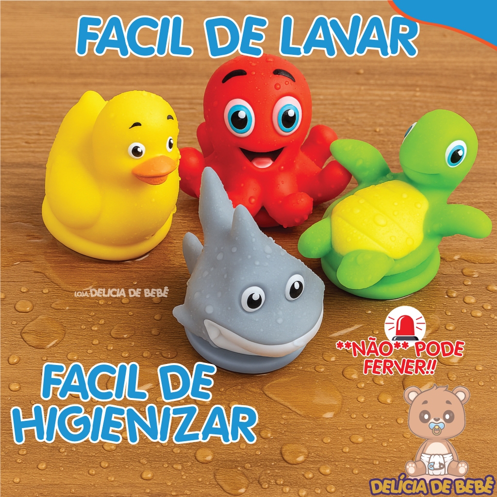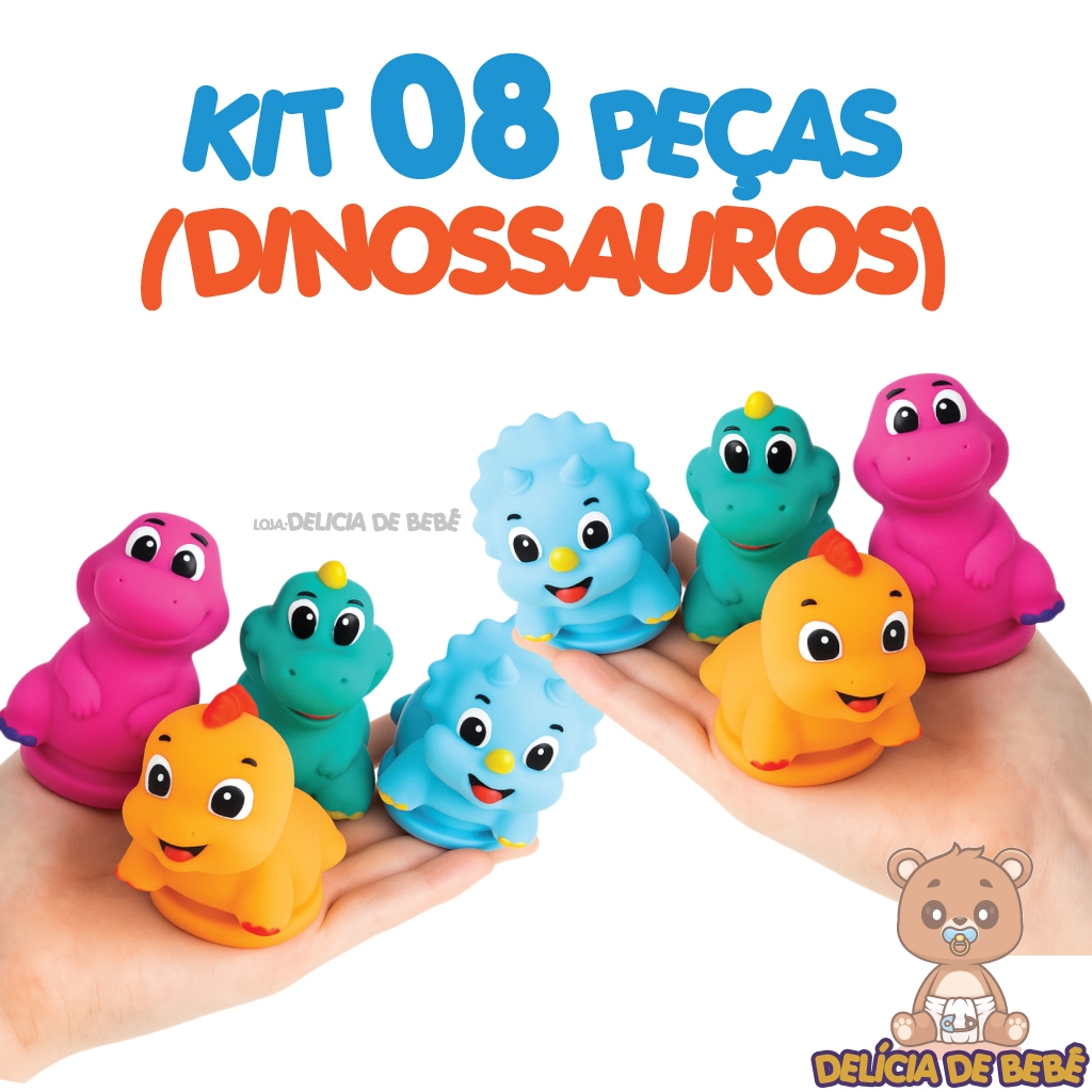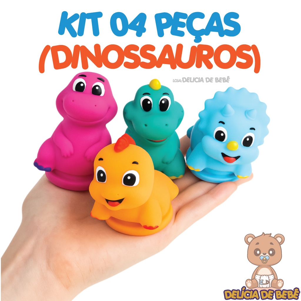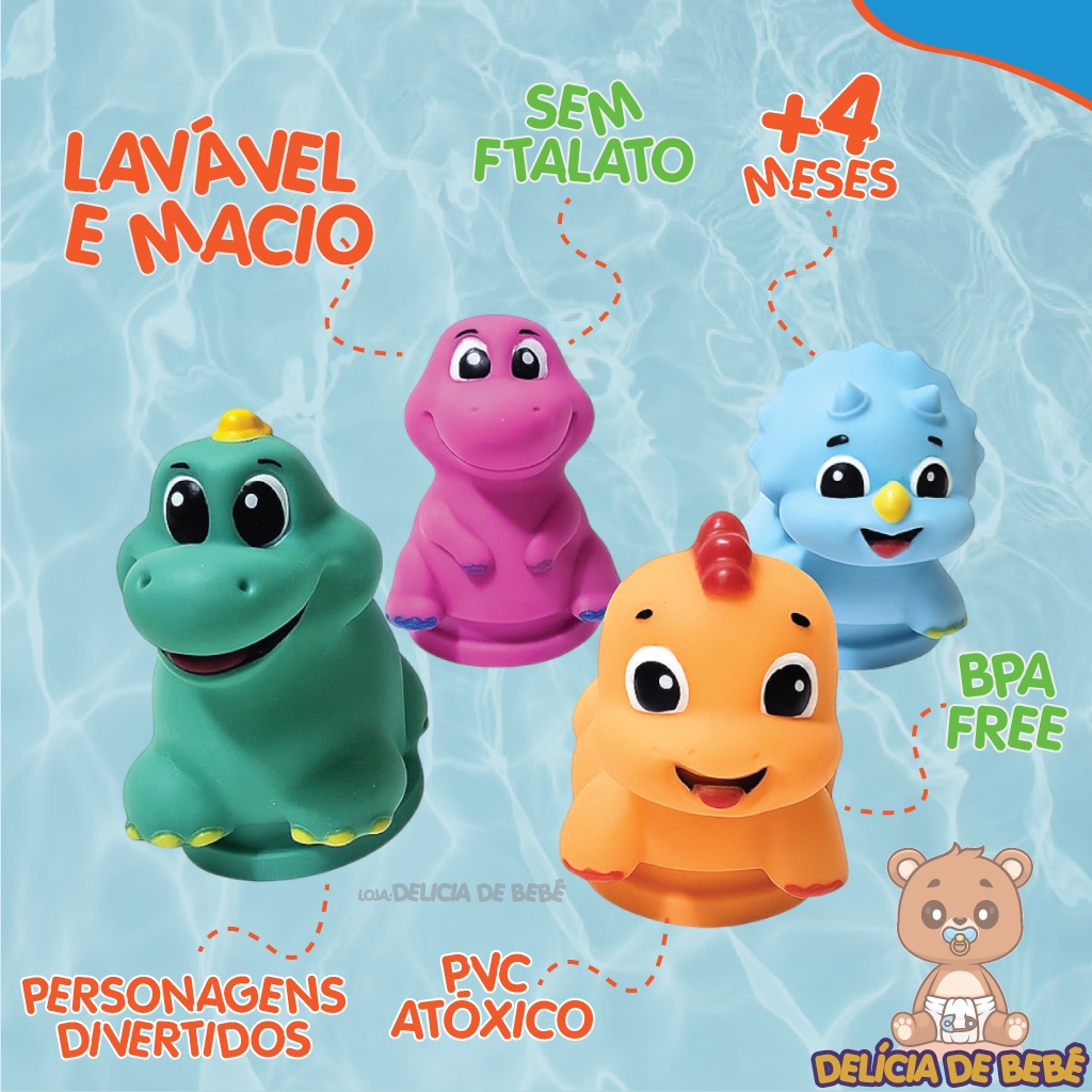 Kit Brinquedo de Banho para Bebê- Patinho- Dino- Flutuante- Macio- Água Banheira Piscina- Vila Toy
