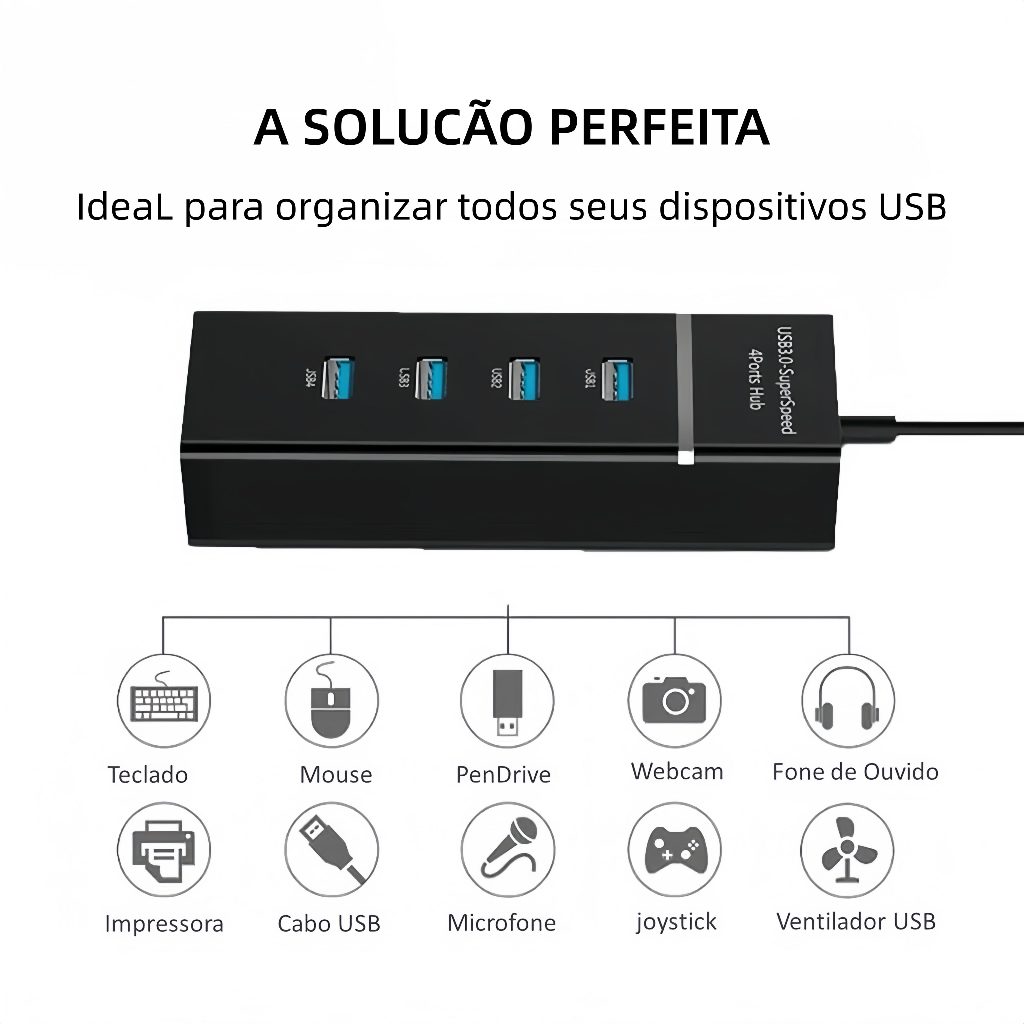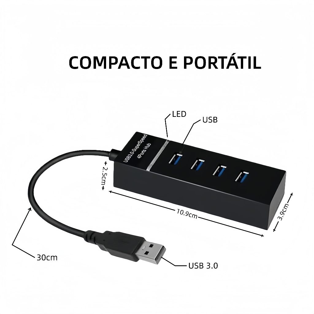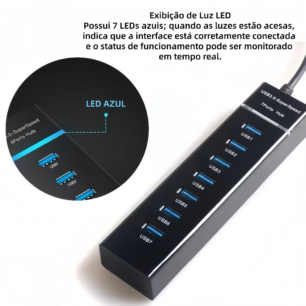 Hub USB 3.0 Múltiplas Portas - 4/7 Portas – Adaptador para Notebook e PC
