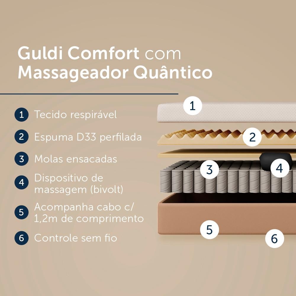 Colchão Queen Guldi Massageador Quântico Molas Ensacadas (30x158x198) Branco e Bege