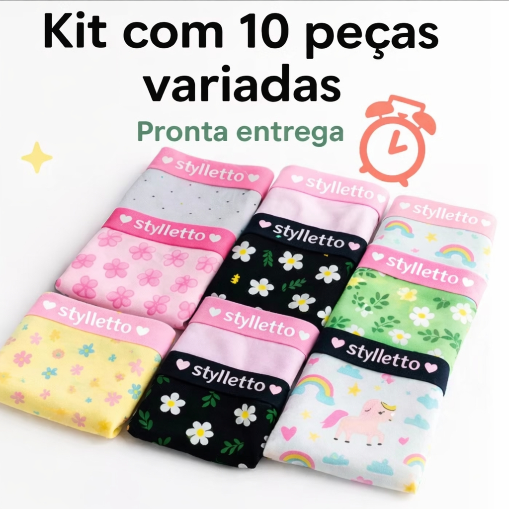 kit 10 Calcinha Juvenil calçolinha de Algodão Menina moça com Elástico personalizado Reforçado na Cintura lisa estampada