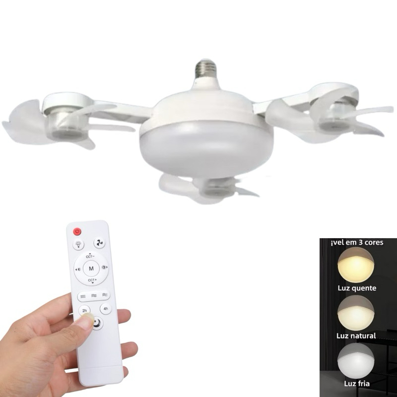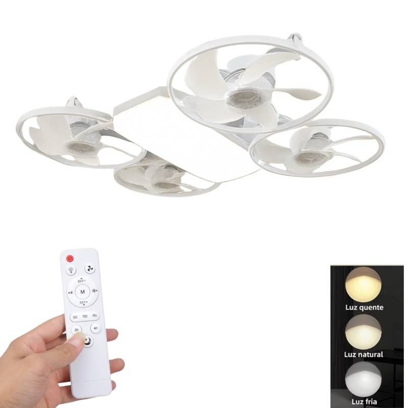Ventilador Preto Drone de Teto Bivolt Dobrável Lâmpada LED 60W Com Controle Remoto - Entrada E27 Com 4 Hélices