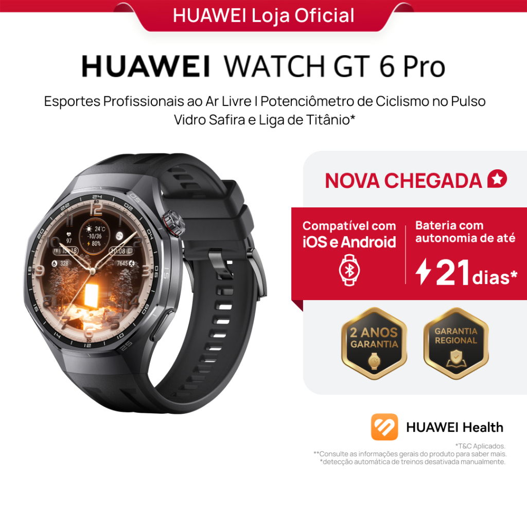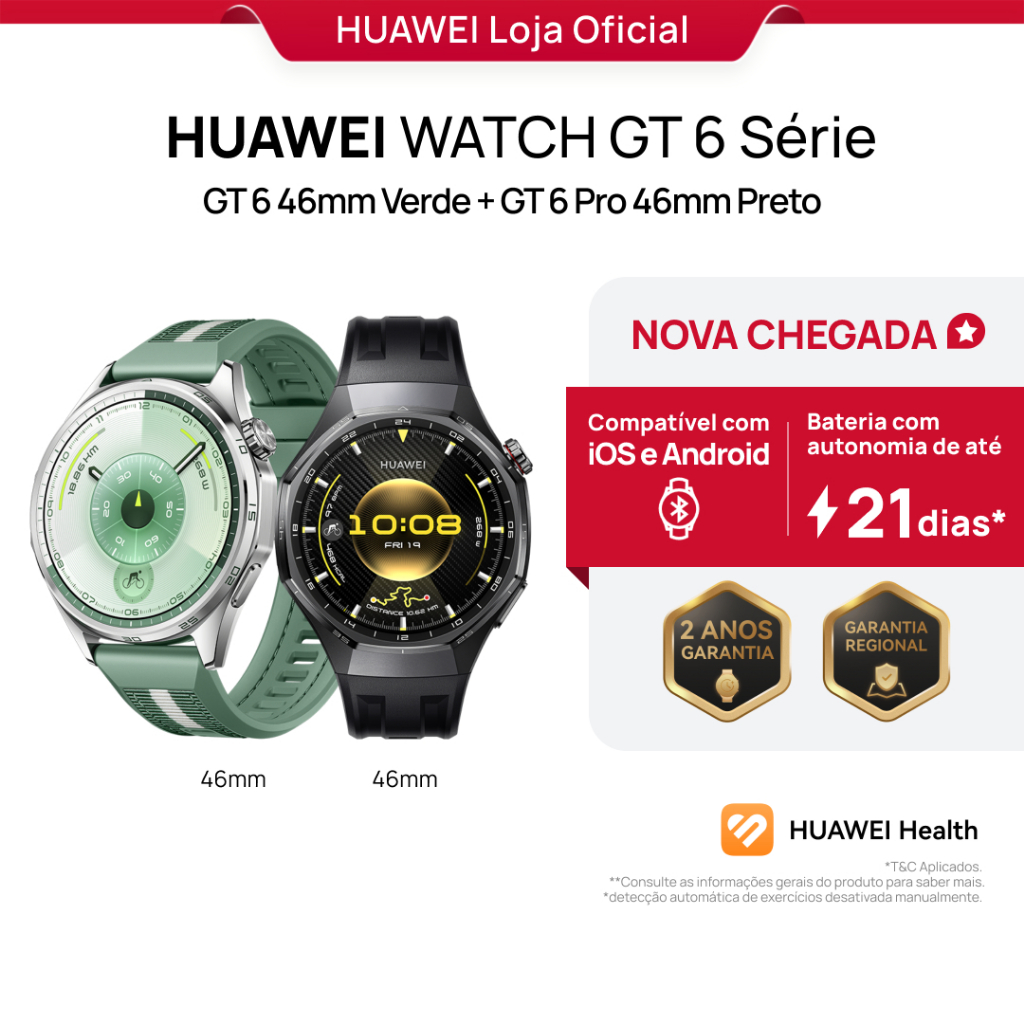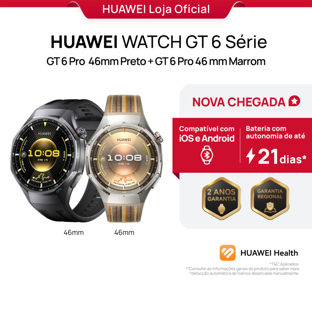 HUAWEI WATCH GT 6 Pro 46mm | Smartwatch Relogio | Vidro Safira e Liga de Titânio | GPS Integrado