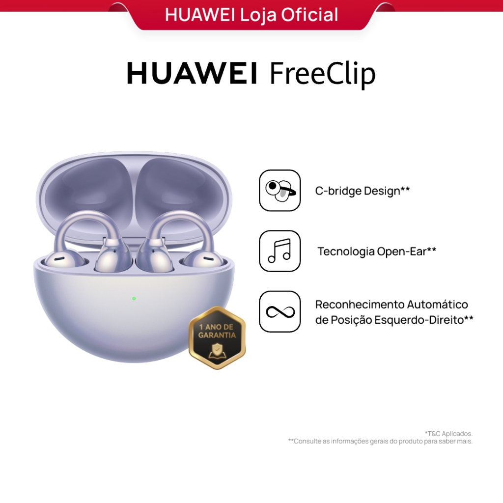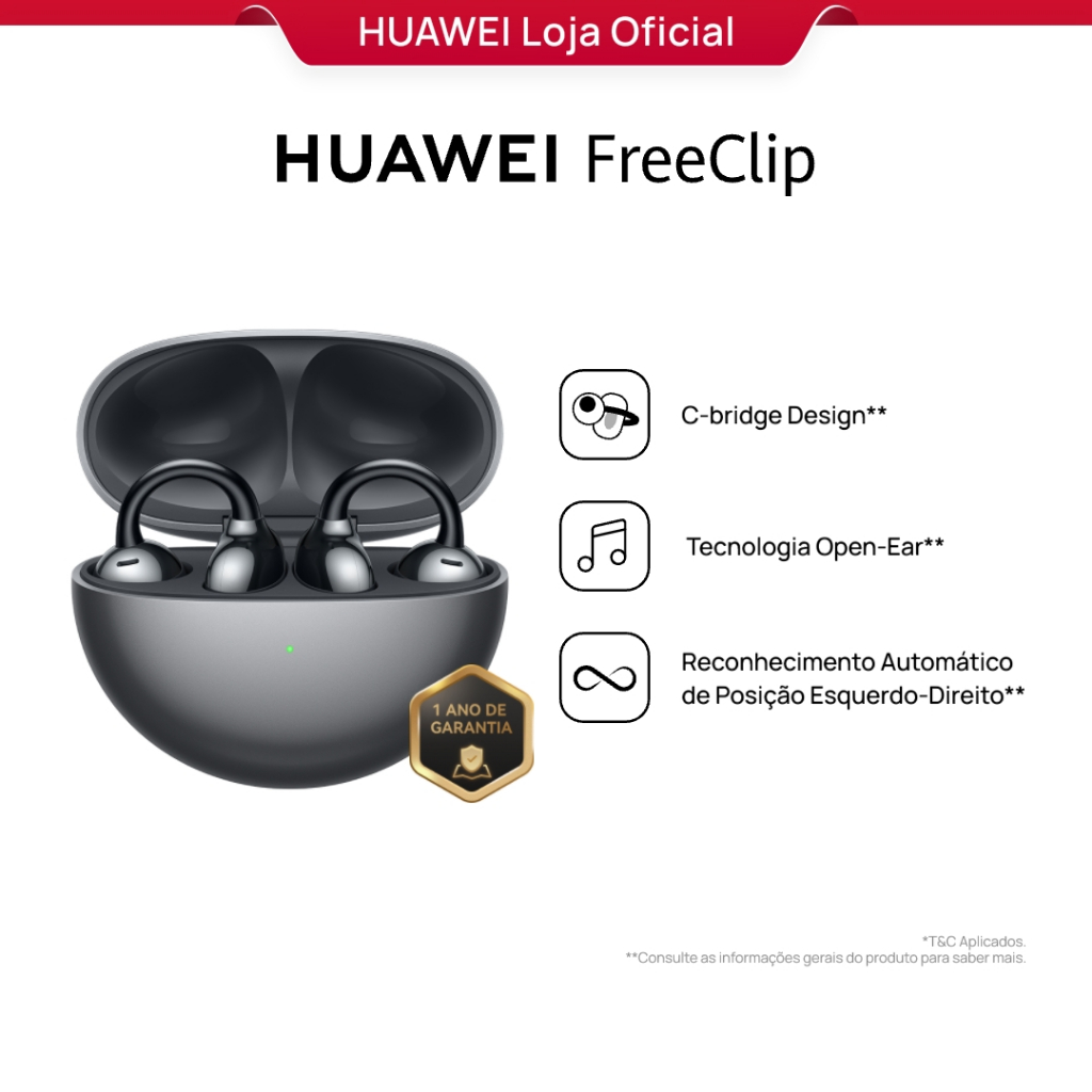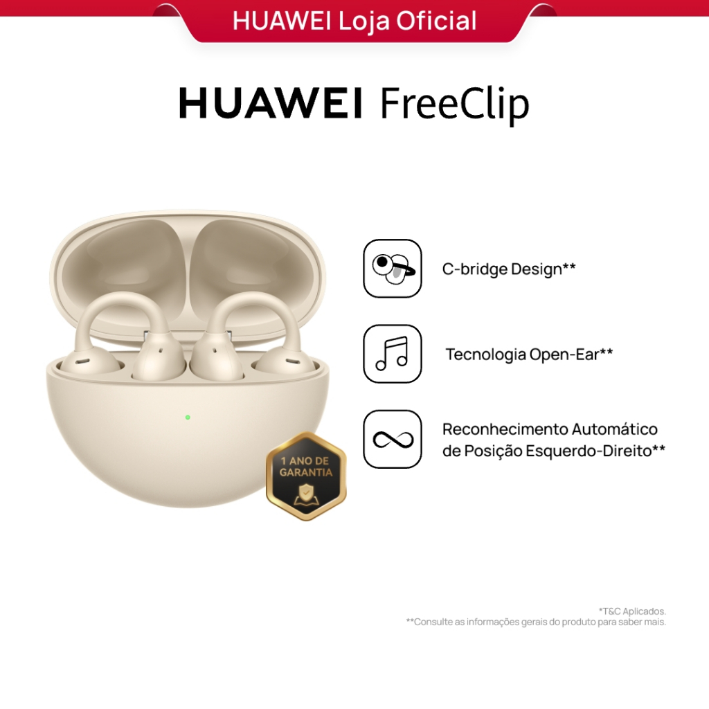 HUAWEI FreeClip | Fone de Ouvido Bluetooth Sem Fio | C-bridge Design | Tecnologia Open-Ear