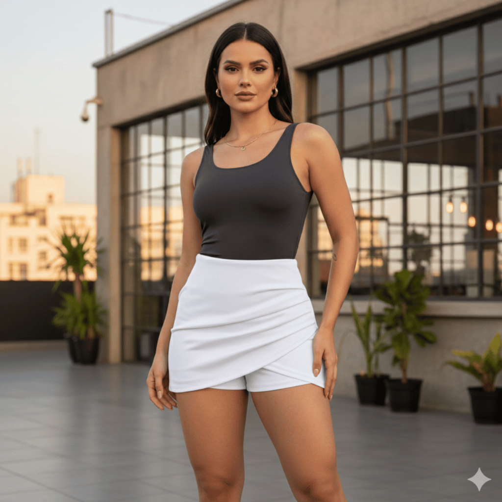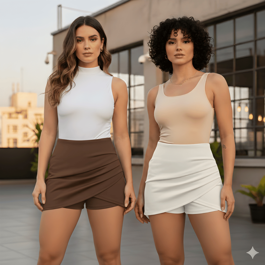 Kit 2 Short Saia Feminino Neoprene Com Laycra Look Casual Elegante Moda Verão