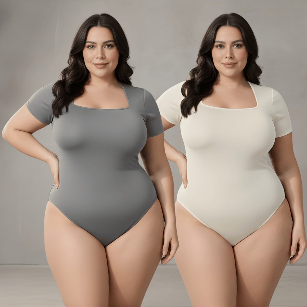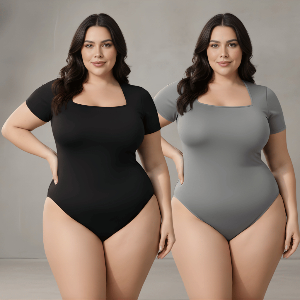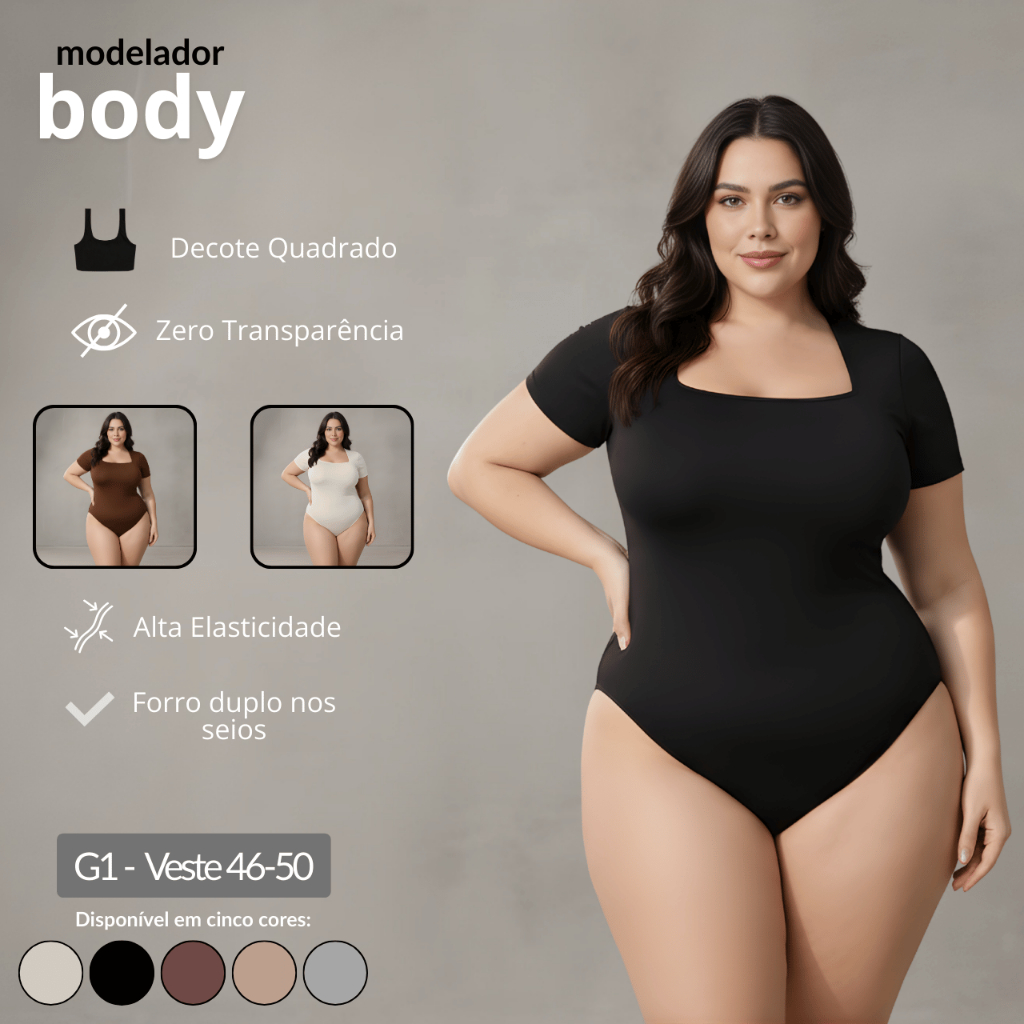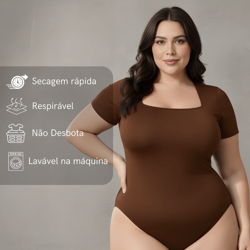 Kit 2 Body Feminino Decote Quadrado Plus Size Bori Suplex Moda Blogueira