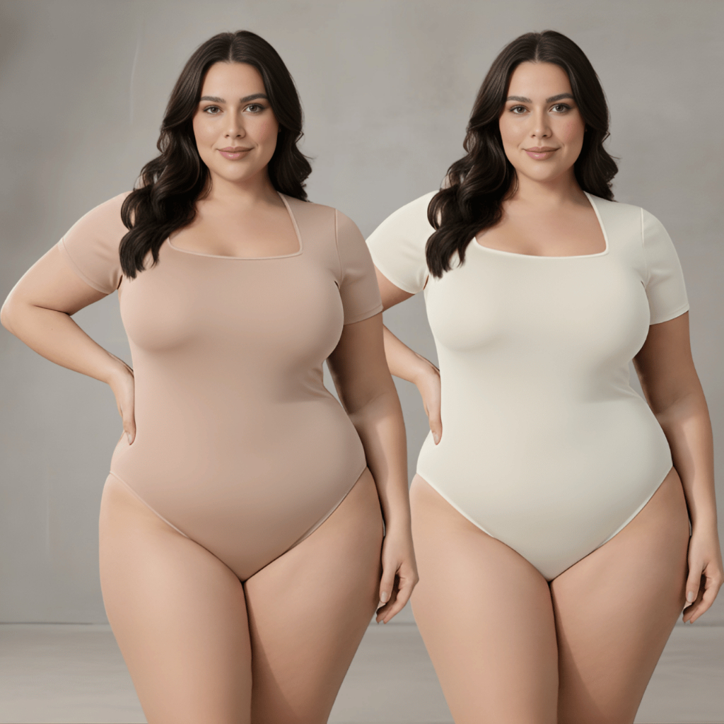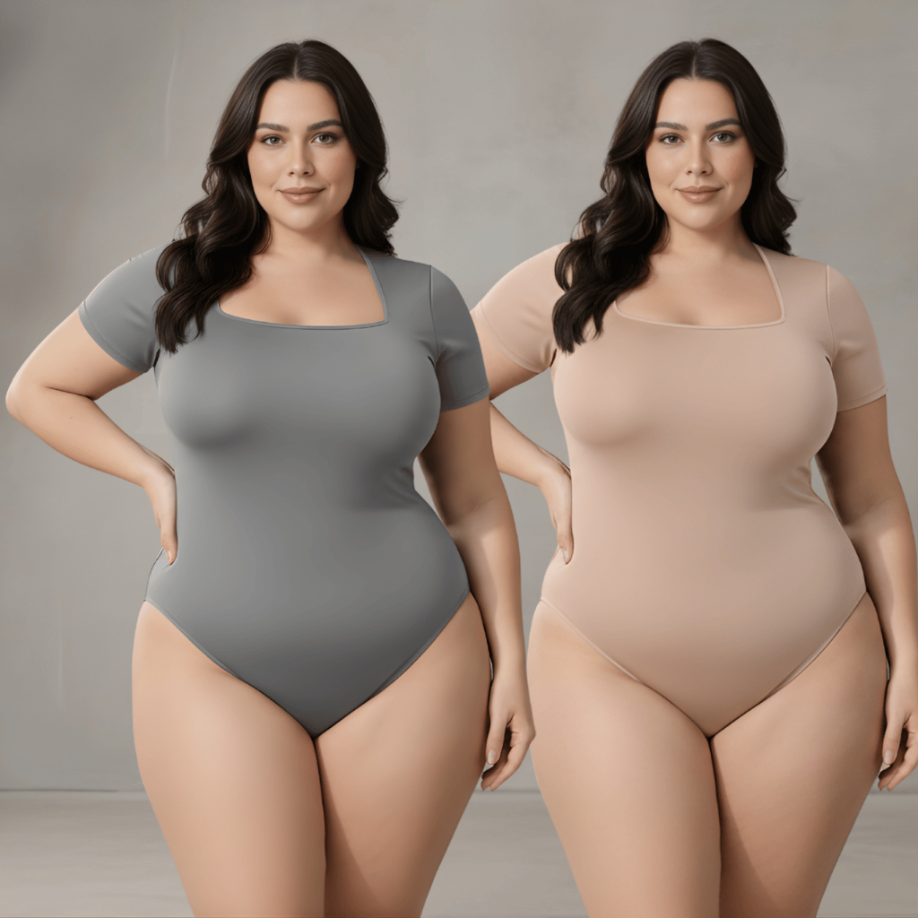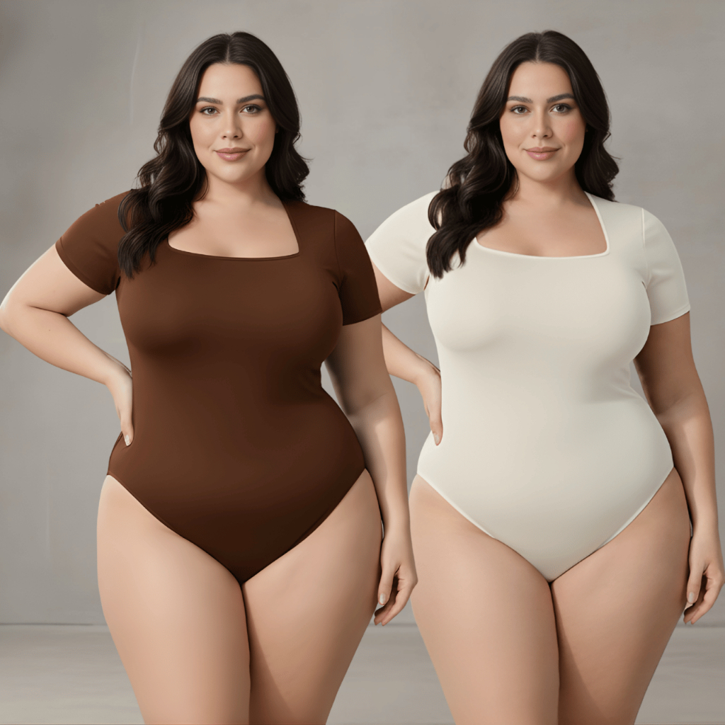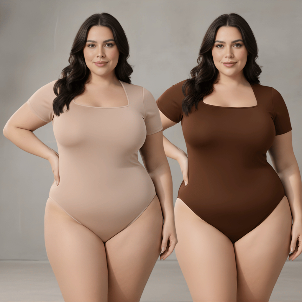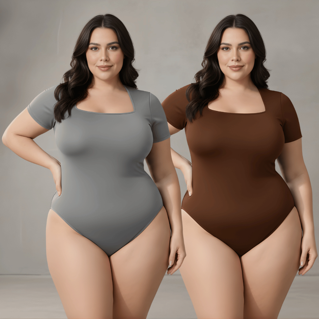 Kit 2 Body Feminino Decote Quadrado Plus Size Bori Suplex Moda Blogueira