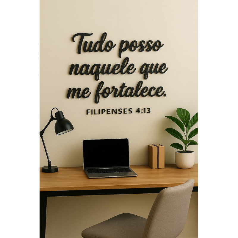 Frase Bíblica Decorativa em MDF 3mm Preto ou Branco