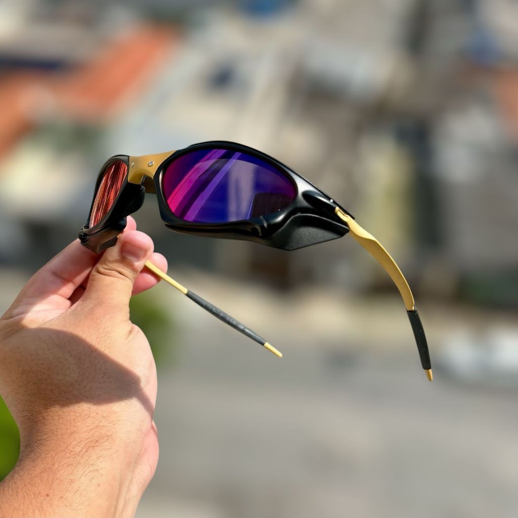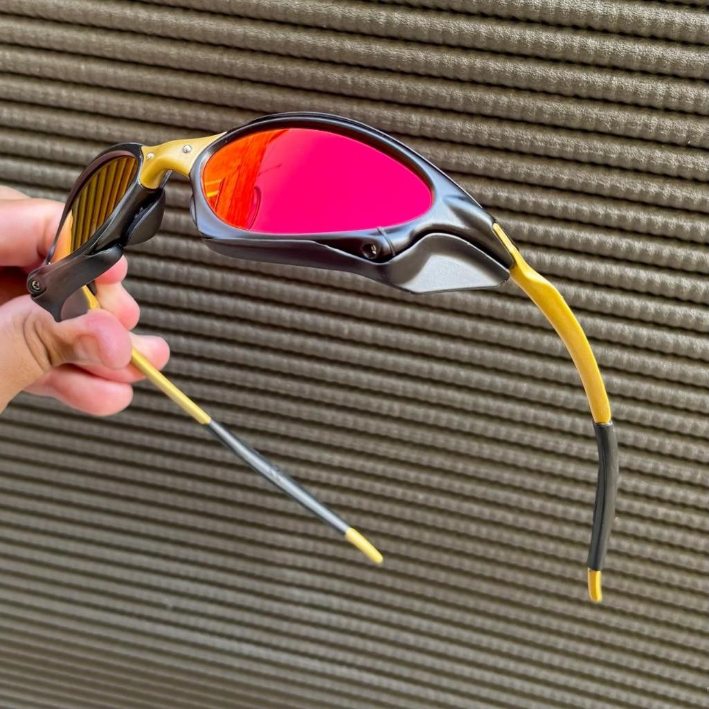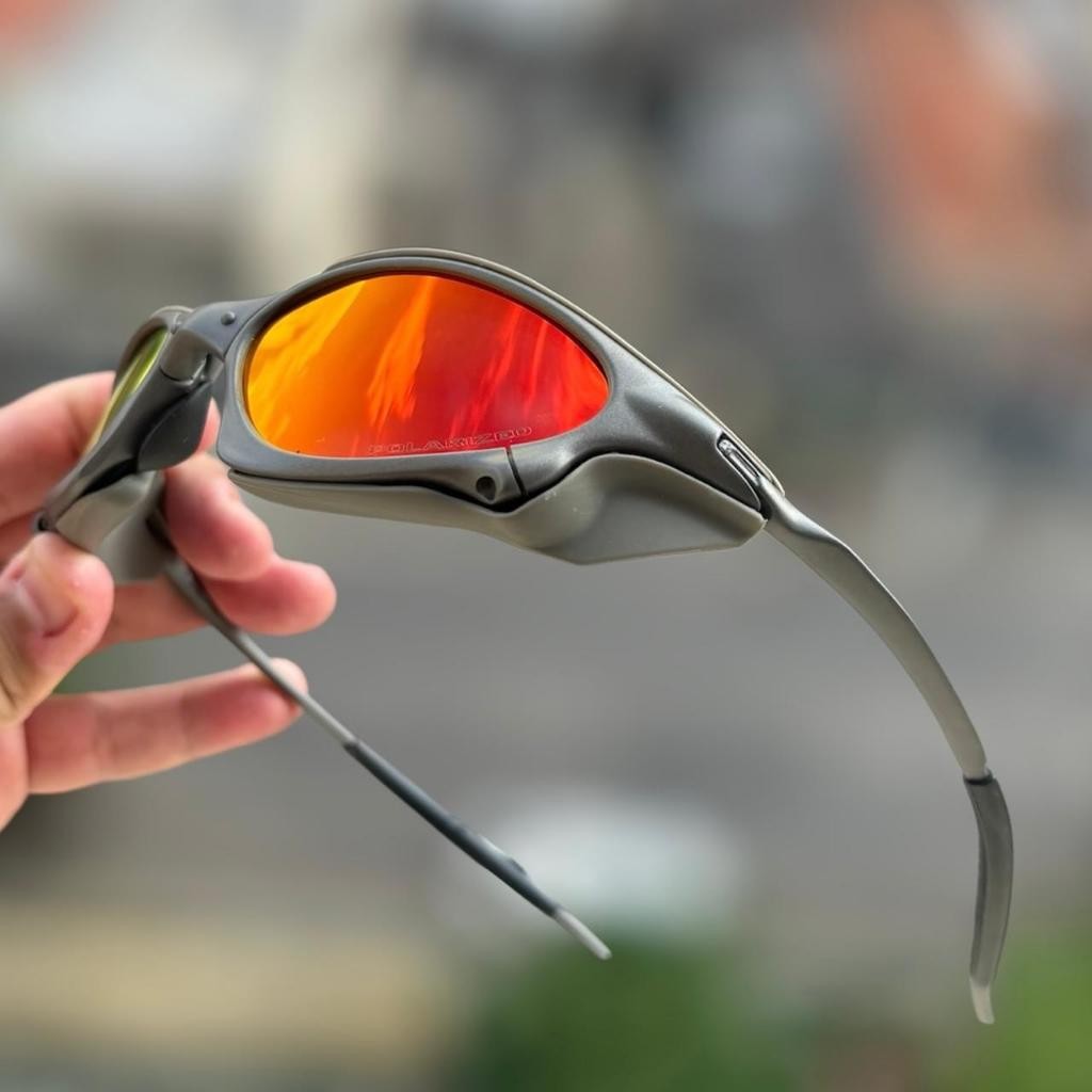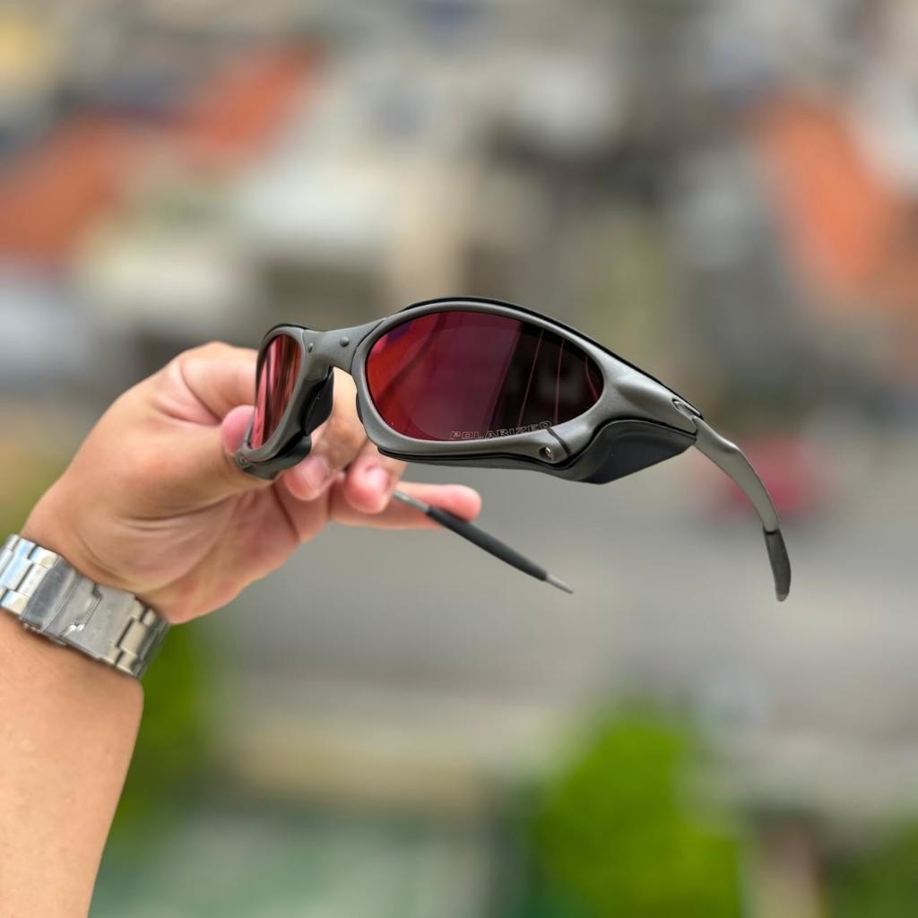 Óculos De Sol P-Metal + Sideblinders Unissex Polarizado K. Preto Lentes Vermelho