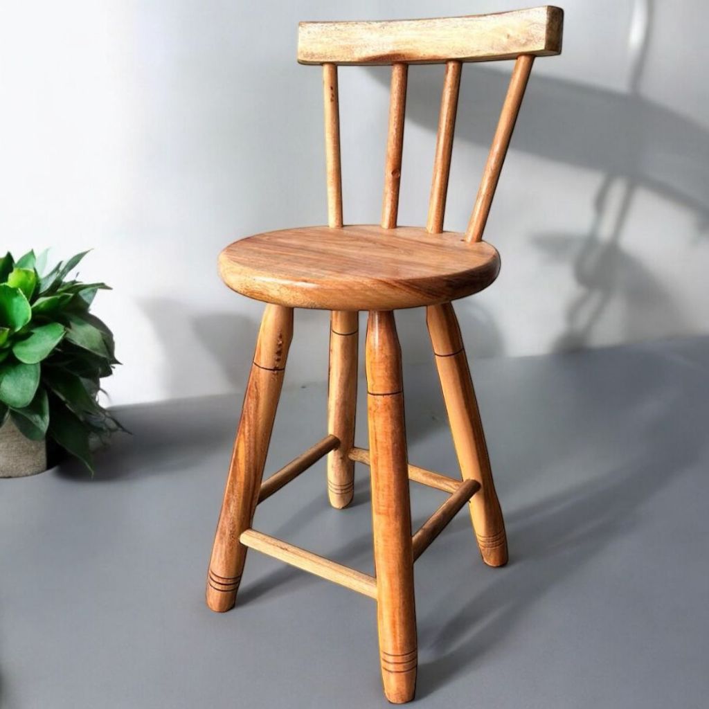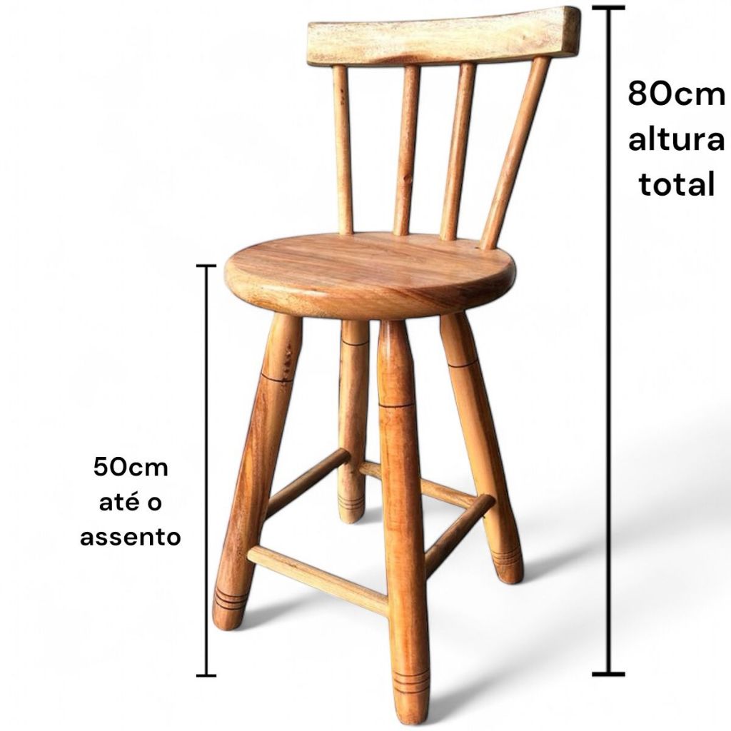 Banqueta Com encosto Madeira Maciça 50cm Alt Tamborete Banco Médio Banquinho