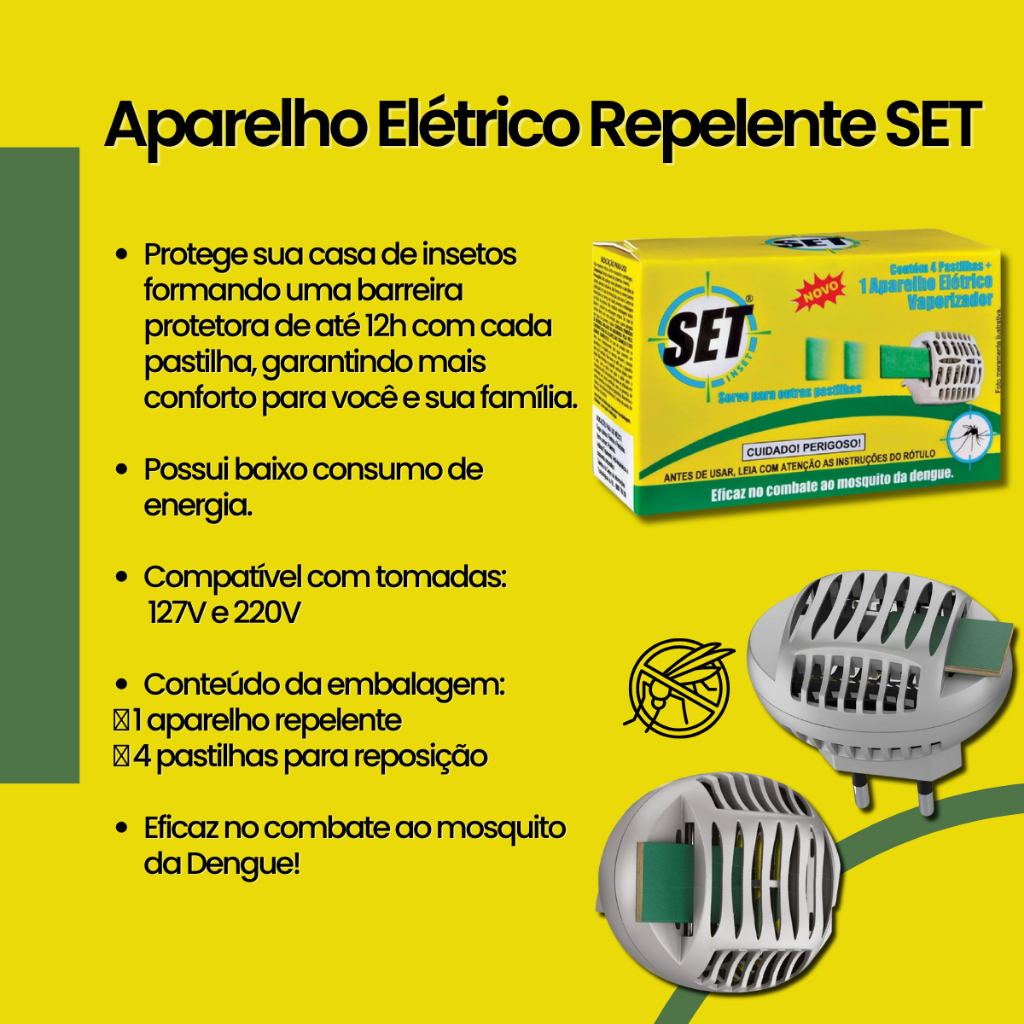 Repelente Aparelho Elétrico Set Inset + 4 Pastilhas