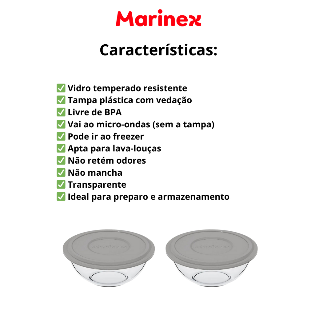 Kit de Tigelas Marinex Nadir 2 PEÇAS - 1,5L/3L Vidro com Tampa