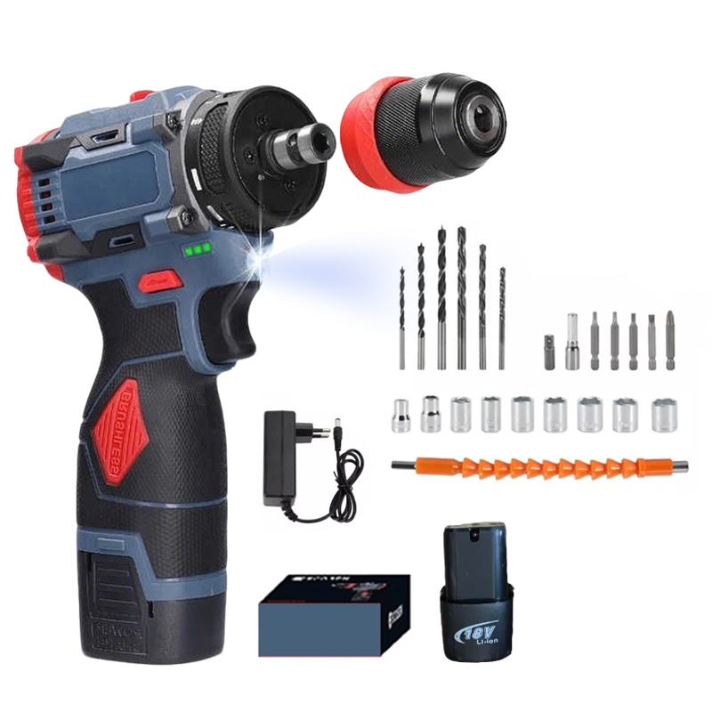 Parafusadeira elétrica com furadeira de lítio 2 em 1 de 18 V e torque de 85 Nm com motor sem escova