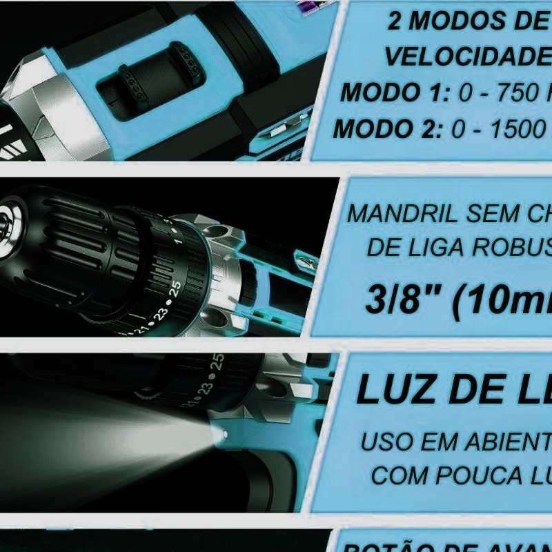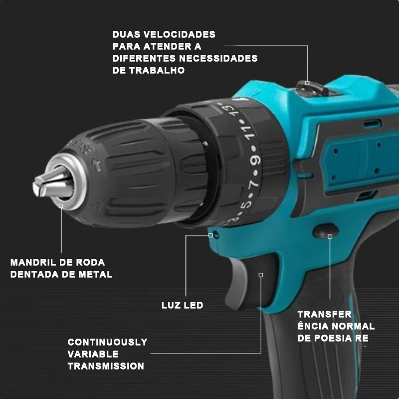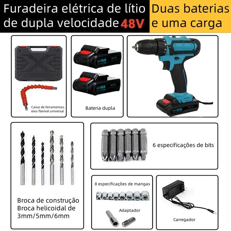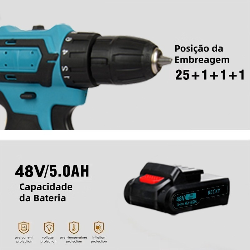 Furadeira e Parafusadeira de Impacto 48V - Alta Performance com 2 Baterias Recarregáveis e Estuche Incluso