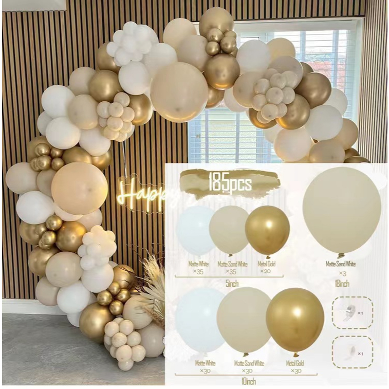 Kit 152 Balões Bexiga Liso Verde Eucalipto 10"+Branco 10"+Dourado Cromado 5"+2 Big Dourado+2 Big Branco Metalizado