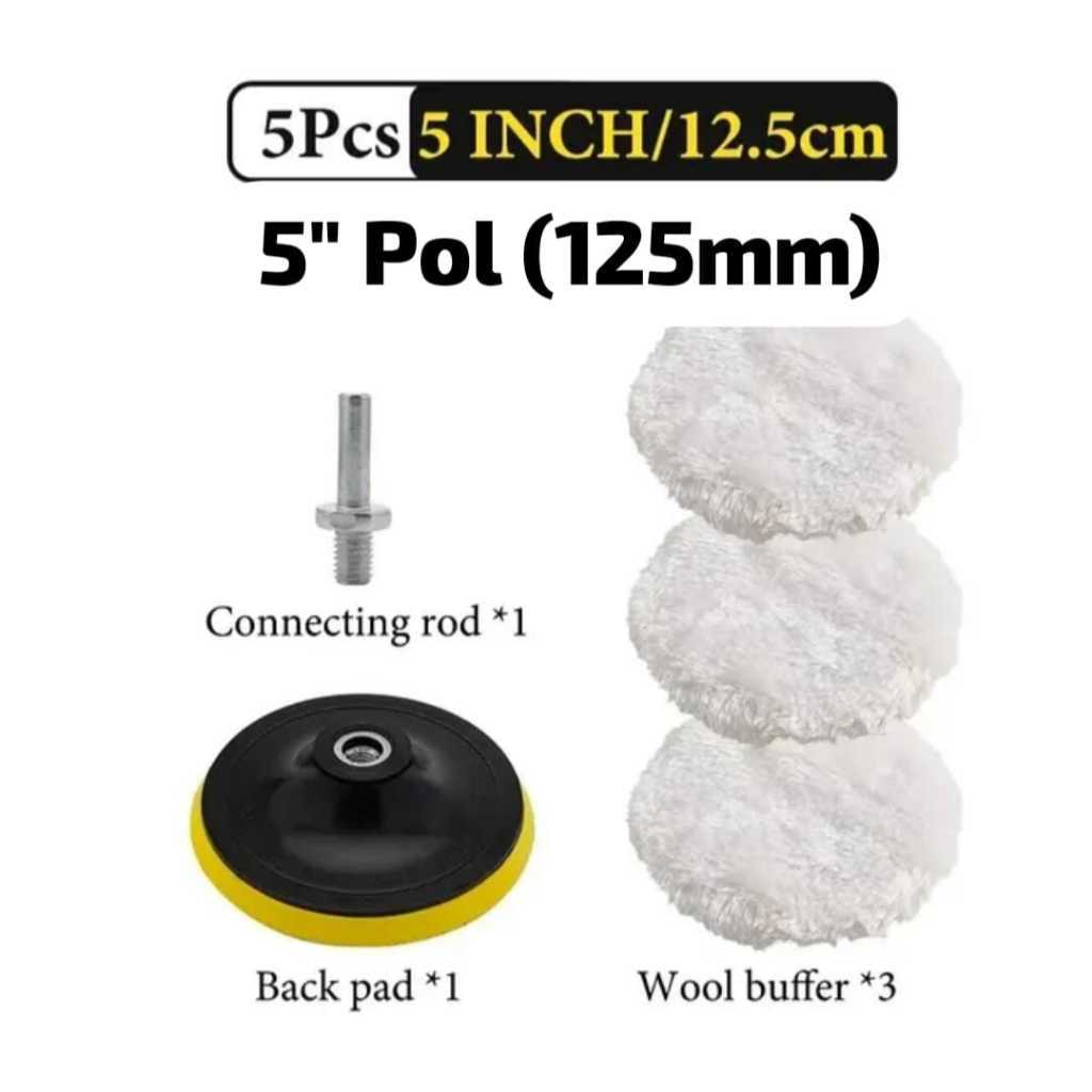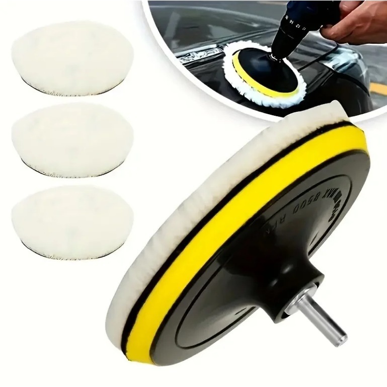 Kit Boina de Lã Polimento Com Suporte Velcro Para Politriz Furadeira e Parafusadeira Automotivo 125mm 5 Polegadas