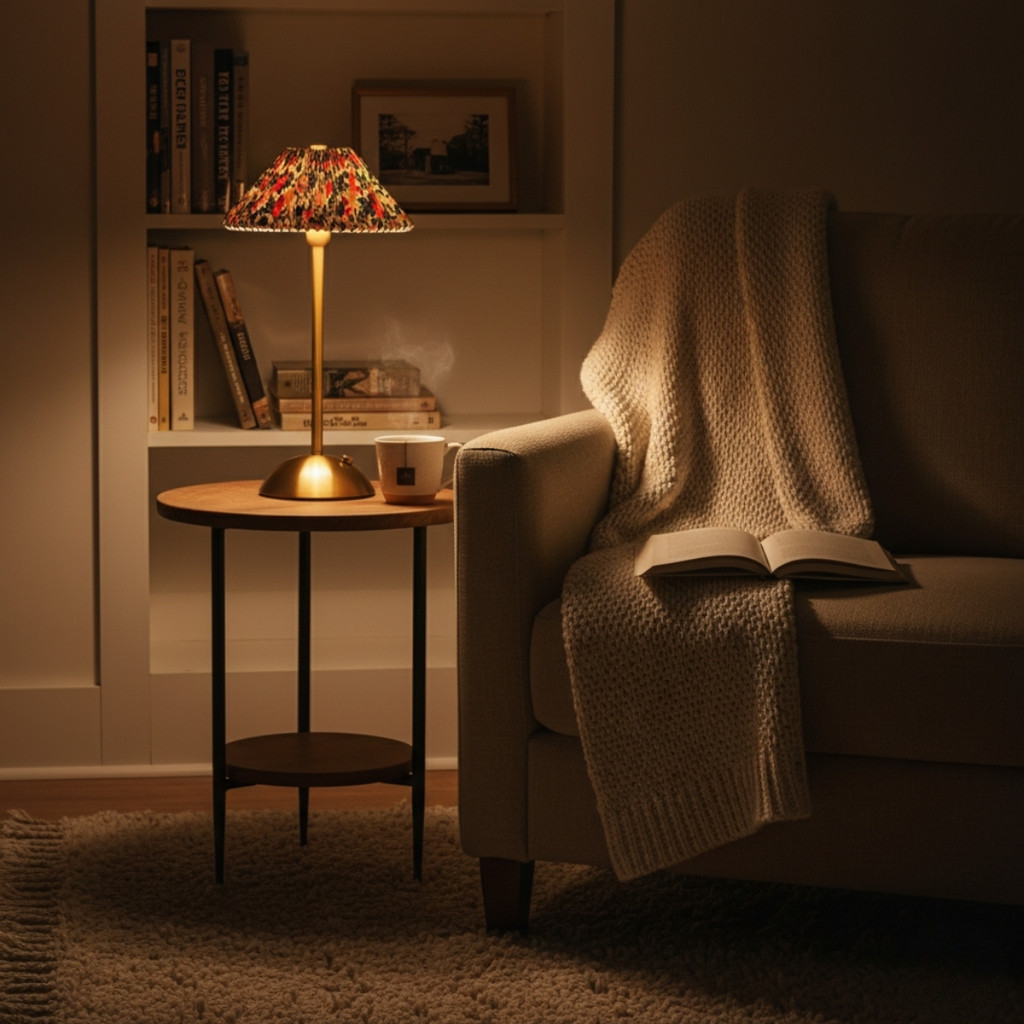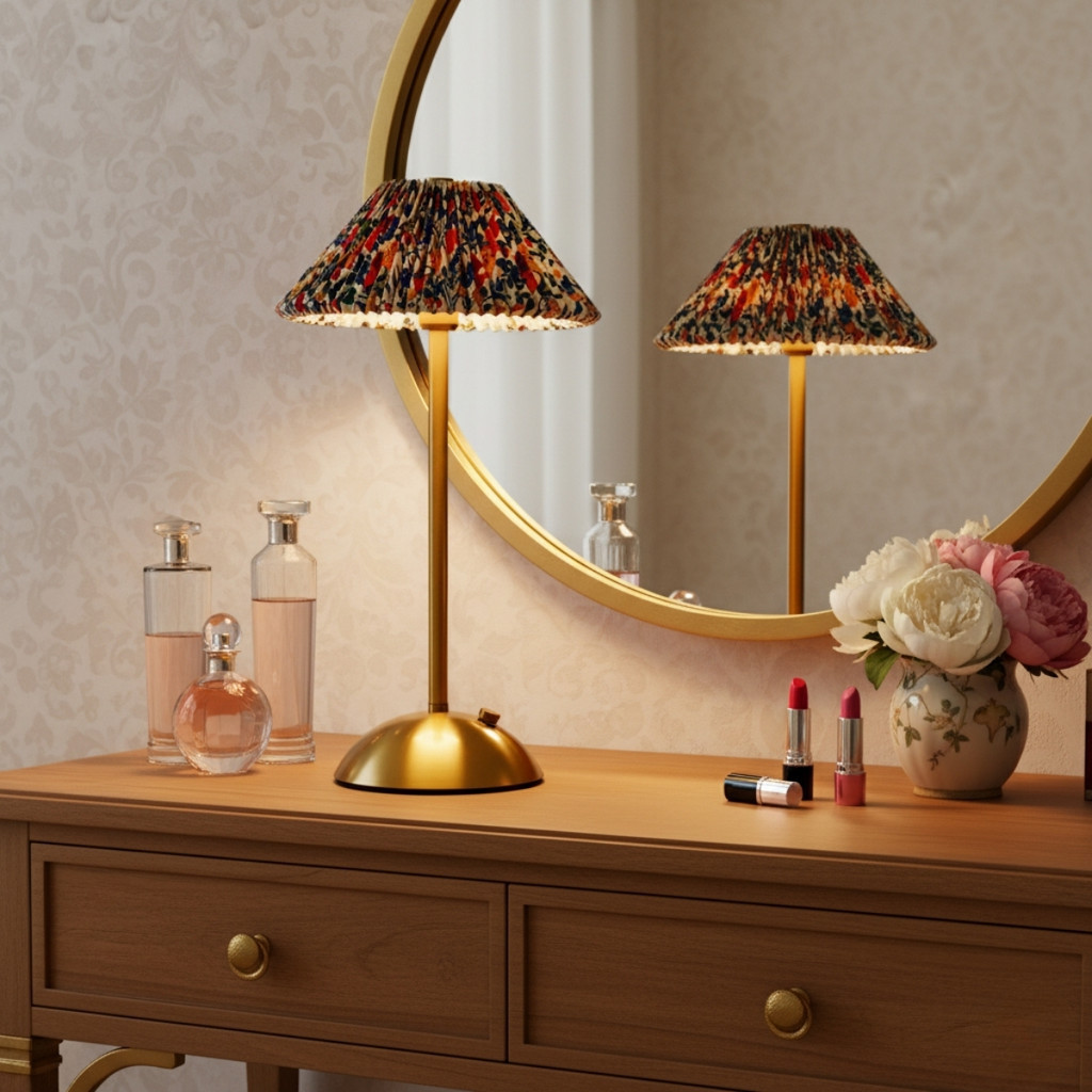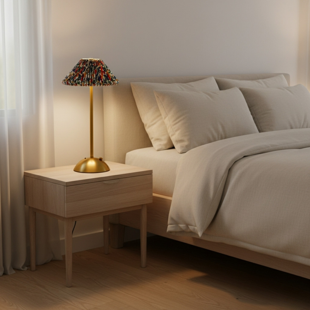 Luminária Abajur de Mesa Saia Seda Com Barra Colorida Aberta Led Toque de Sensor Sem Fio 3 Cores