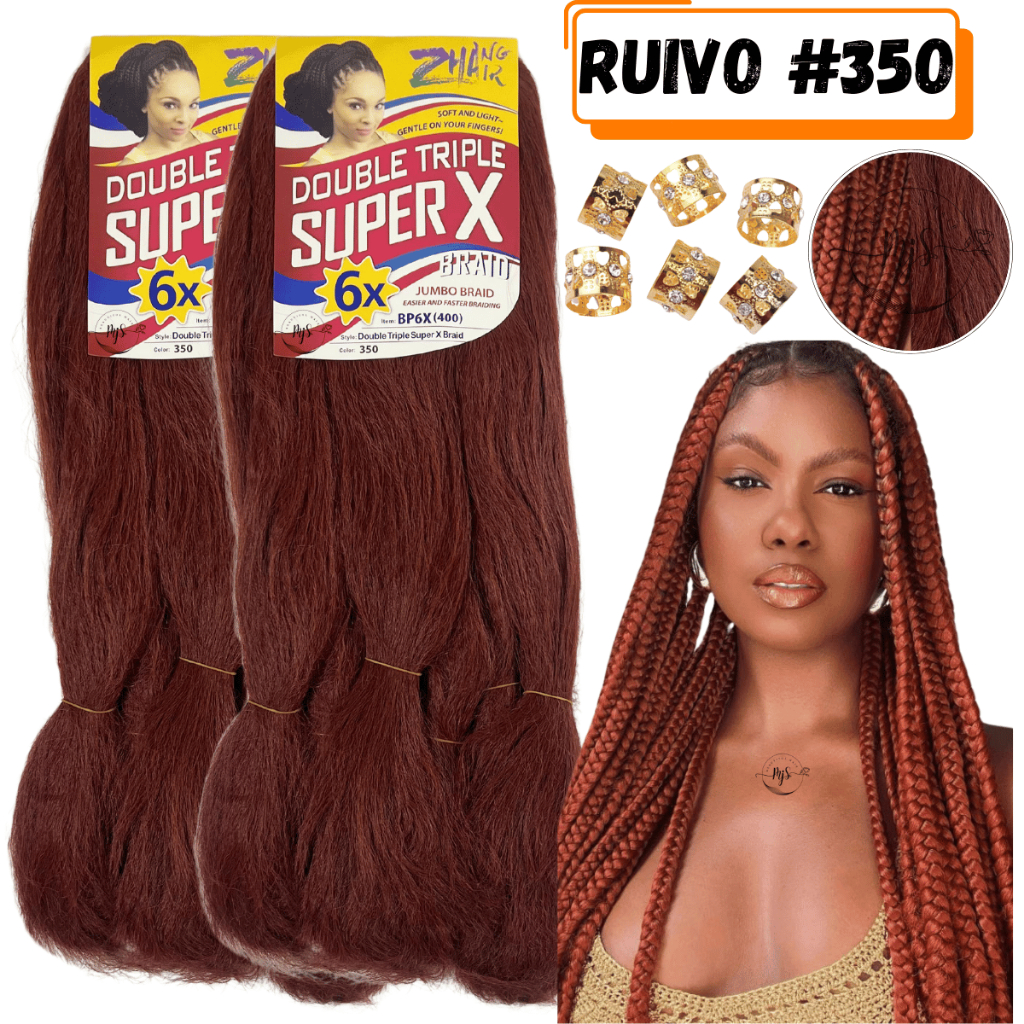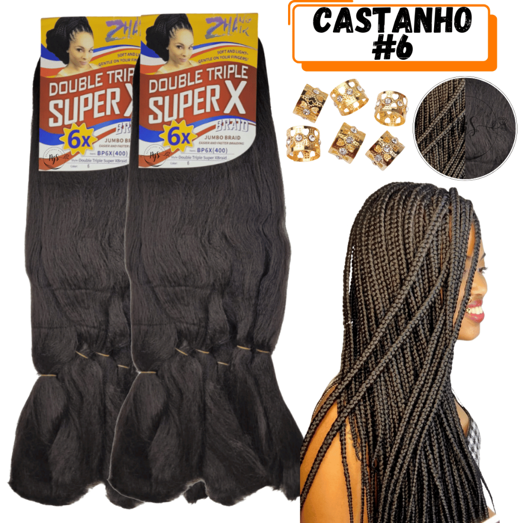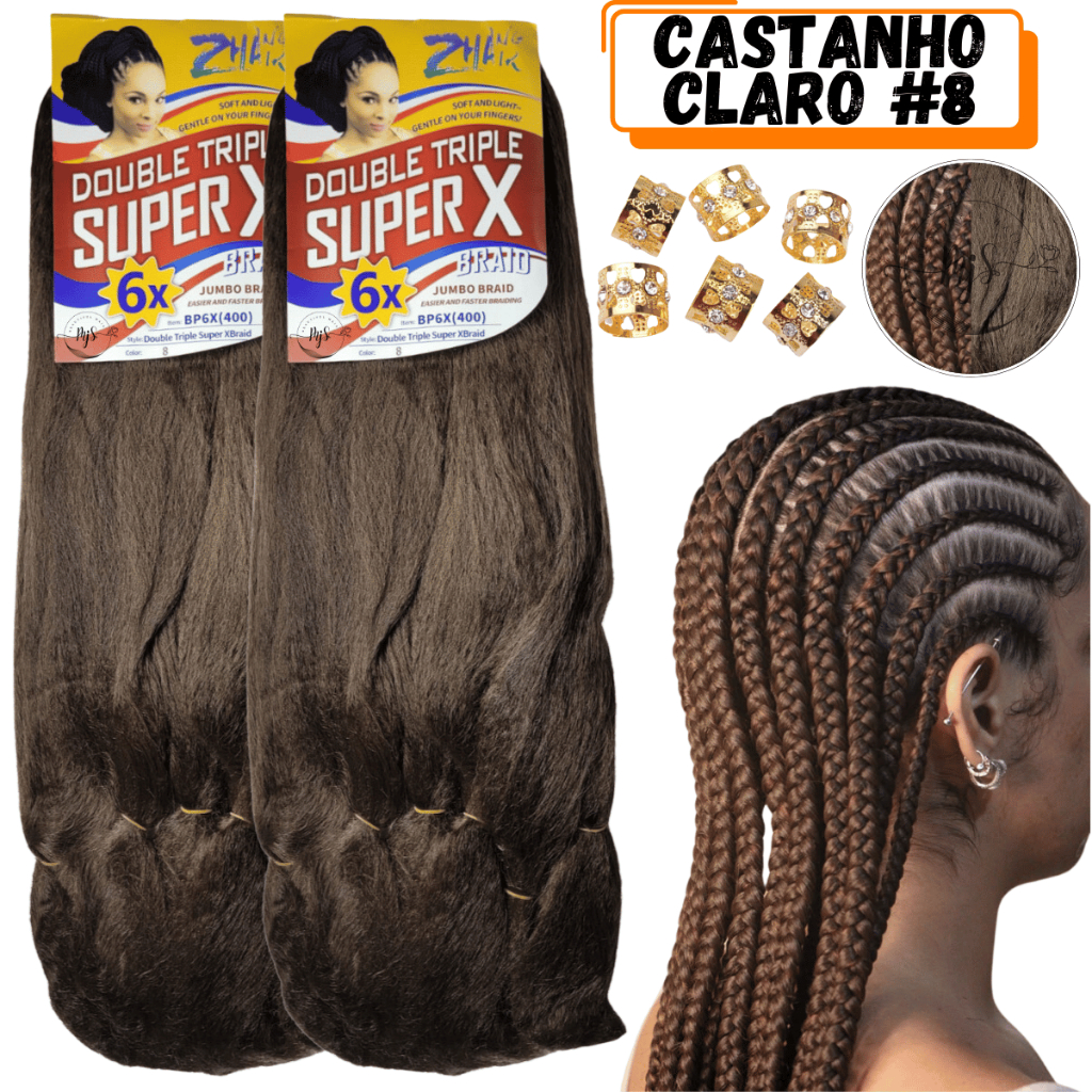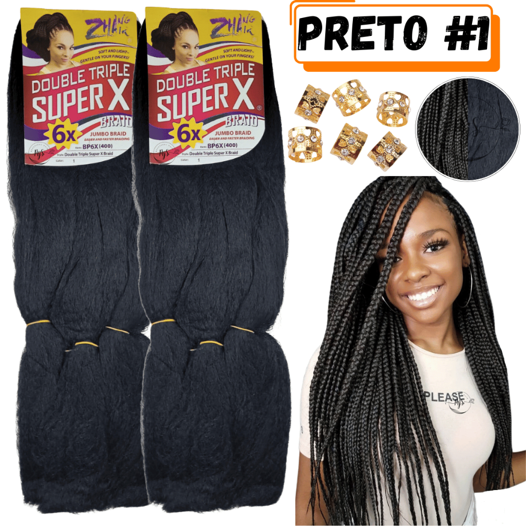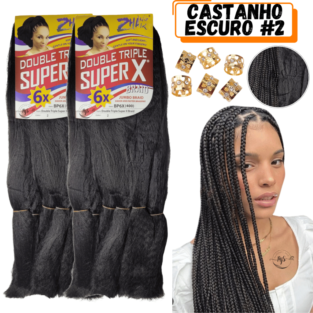 Kit 2 Cabelos Jumbo Jumbão Para Tranças Kanekalon Super X Fibra Especial 400 Gramas + Anéis