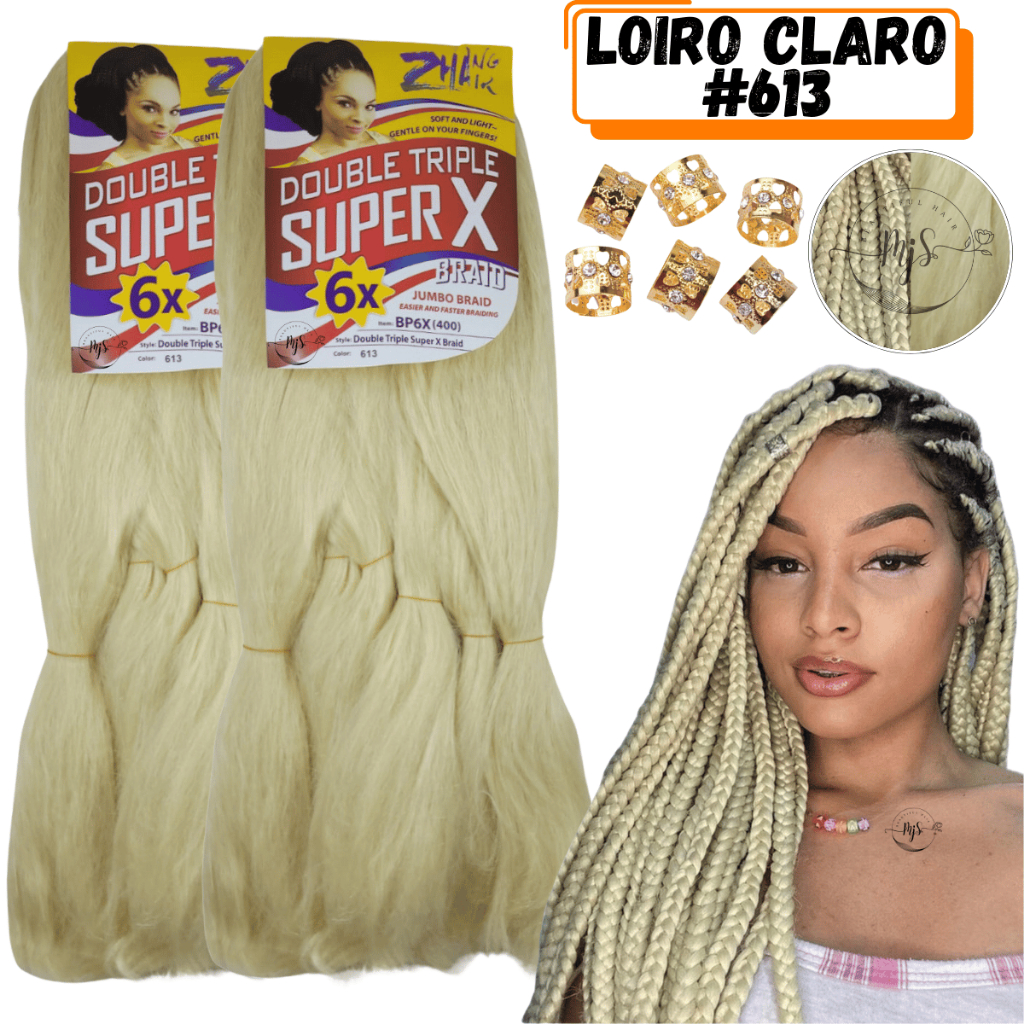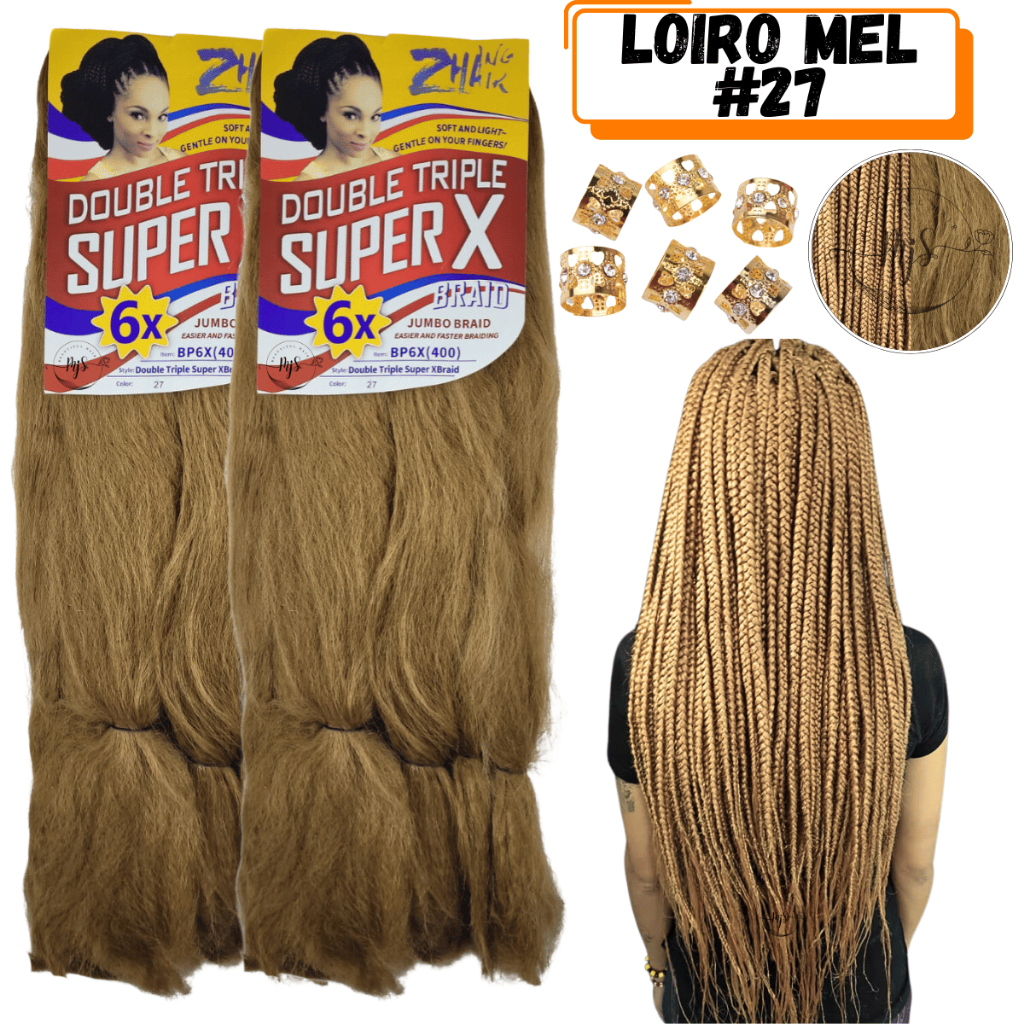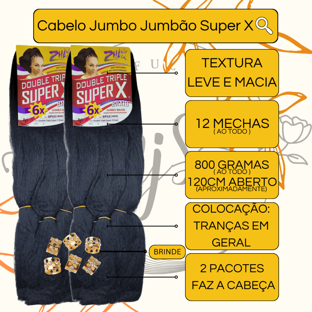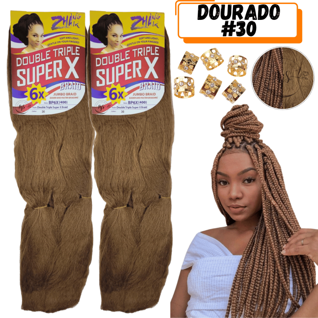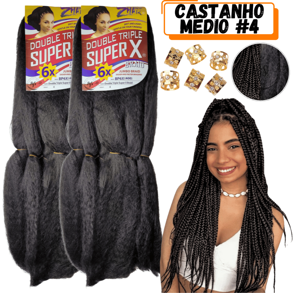 Kit 2 Cabelos Jumbo Jumbão Para Tranças Kanekalon Super X Fibra Especial 400 Gramas + Anéis