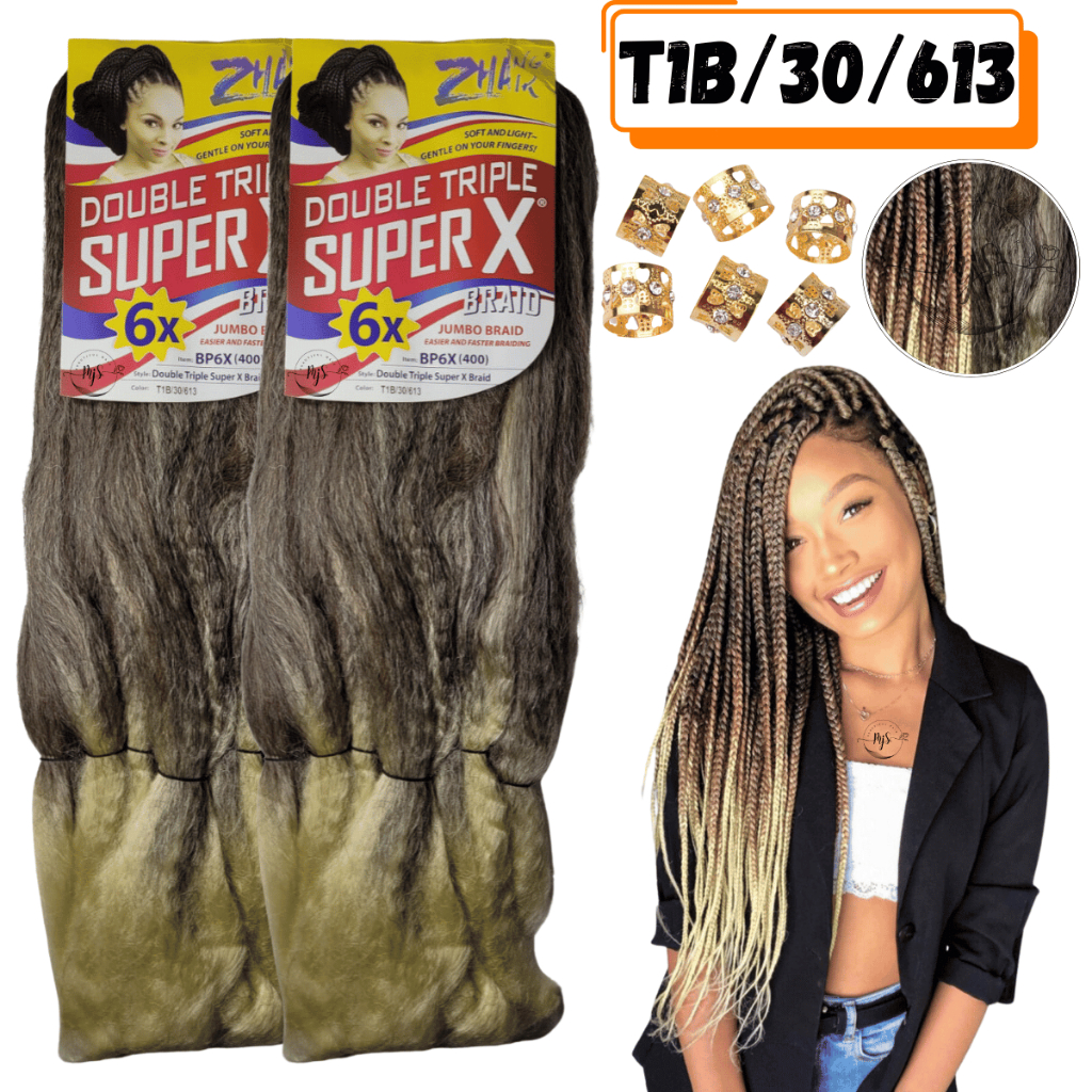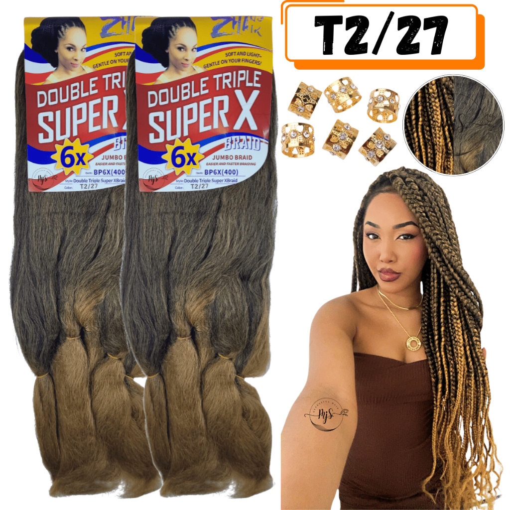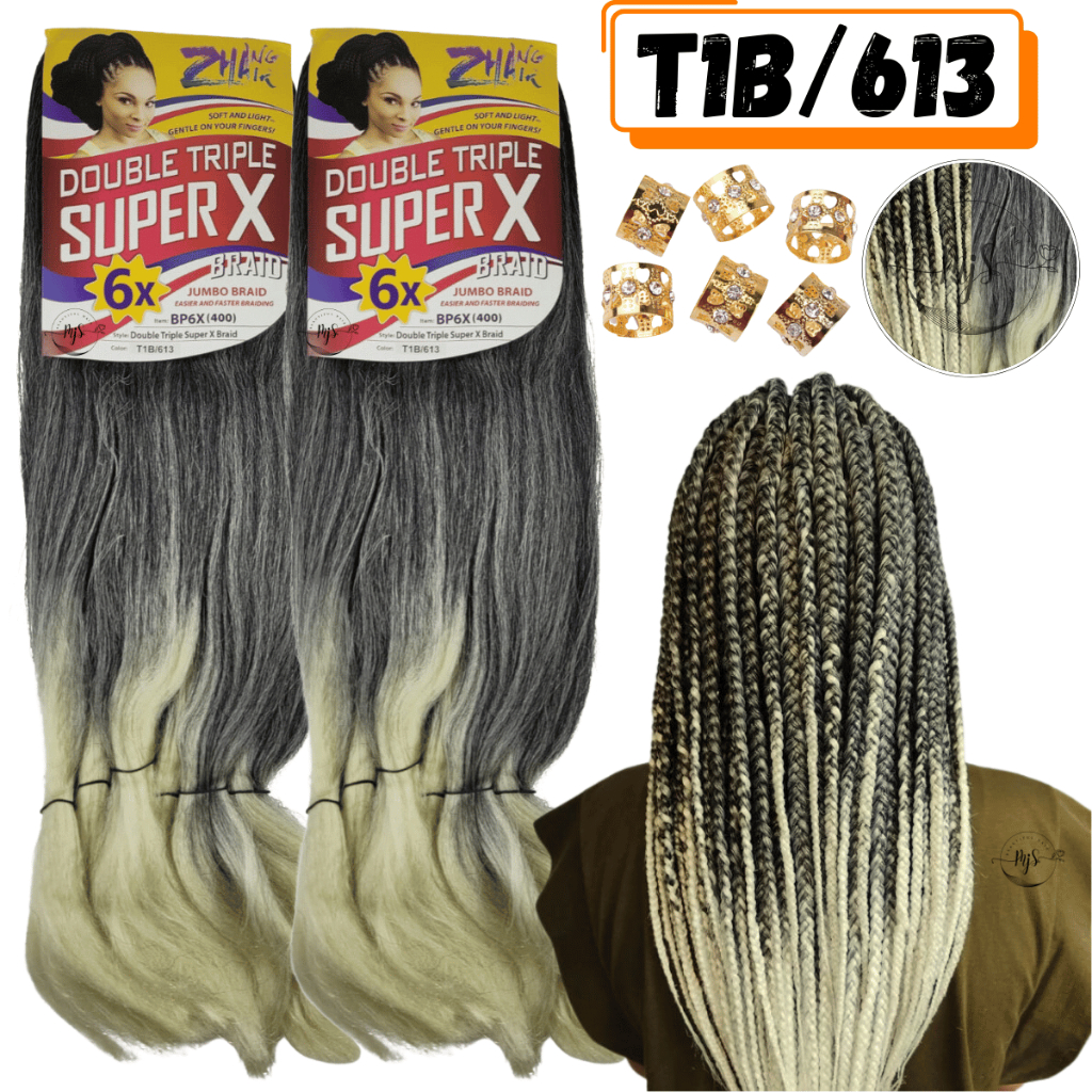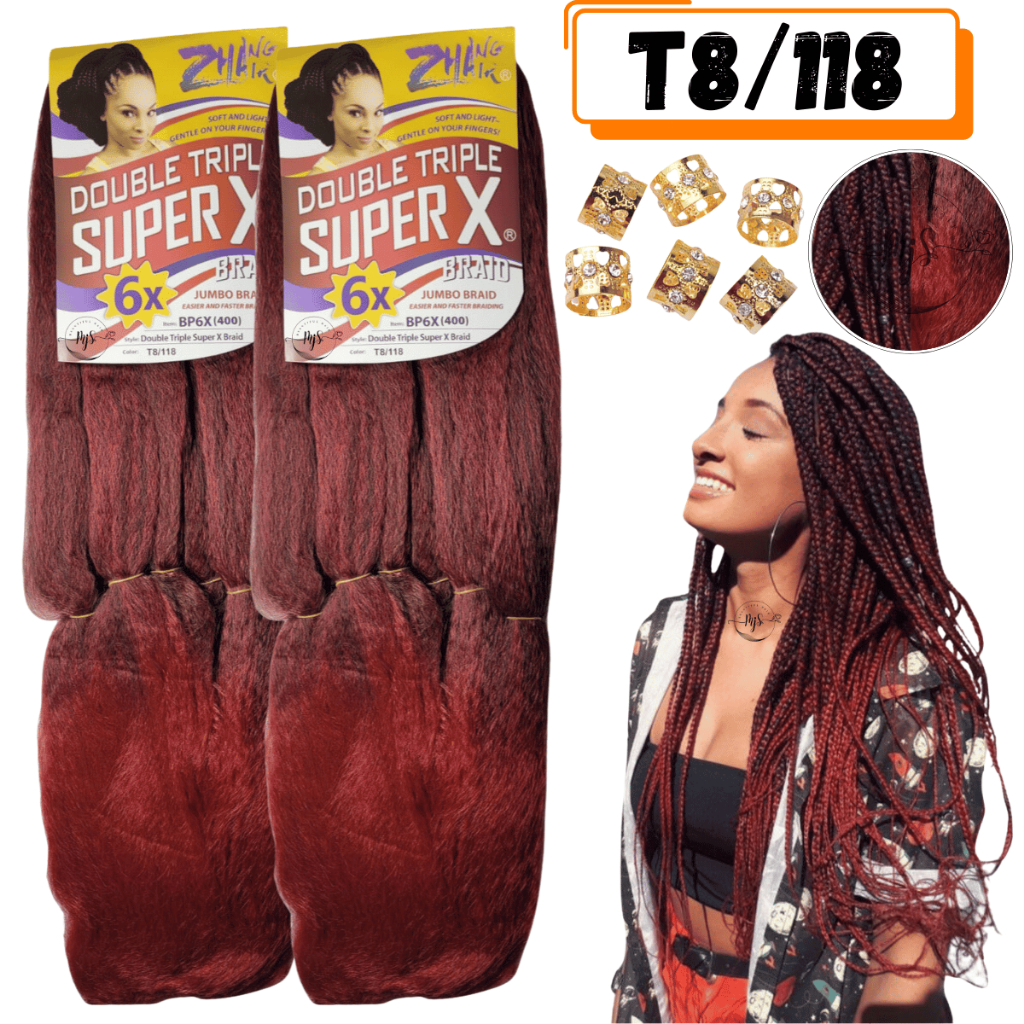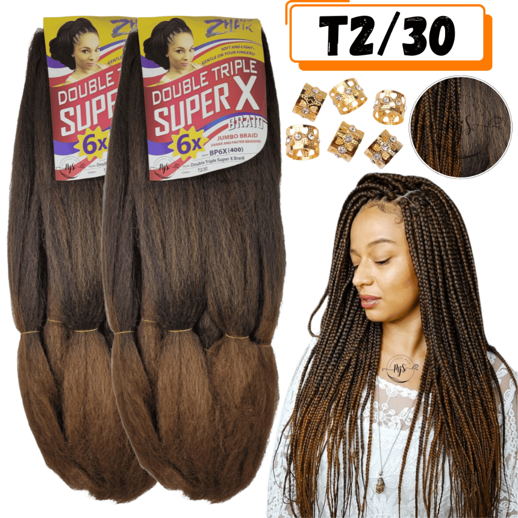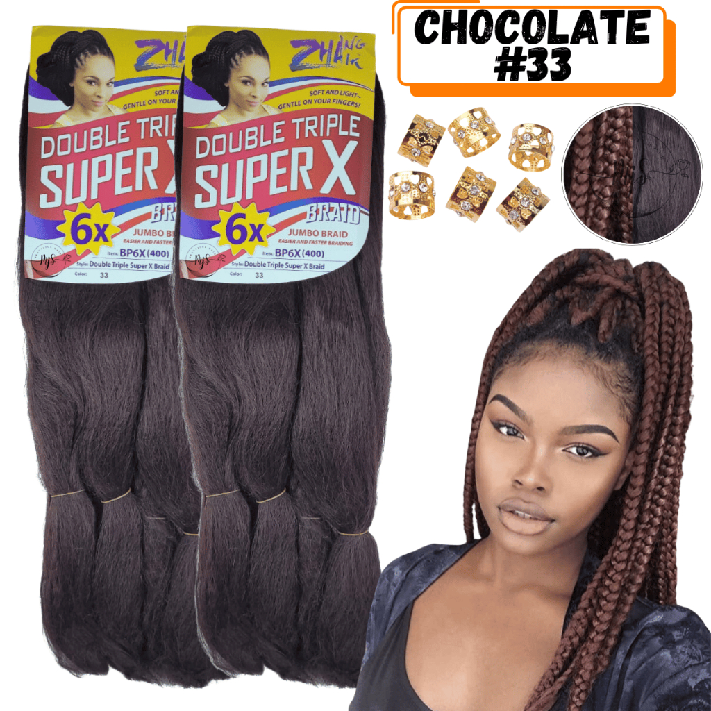 Kit 2 Cabelos Jumbo Jumbão Para Tranças Kanekalon Super X Fibra Especial 400 Gramas + Anéis