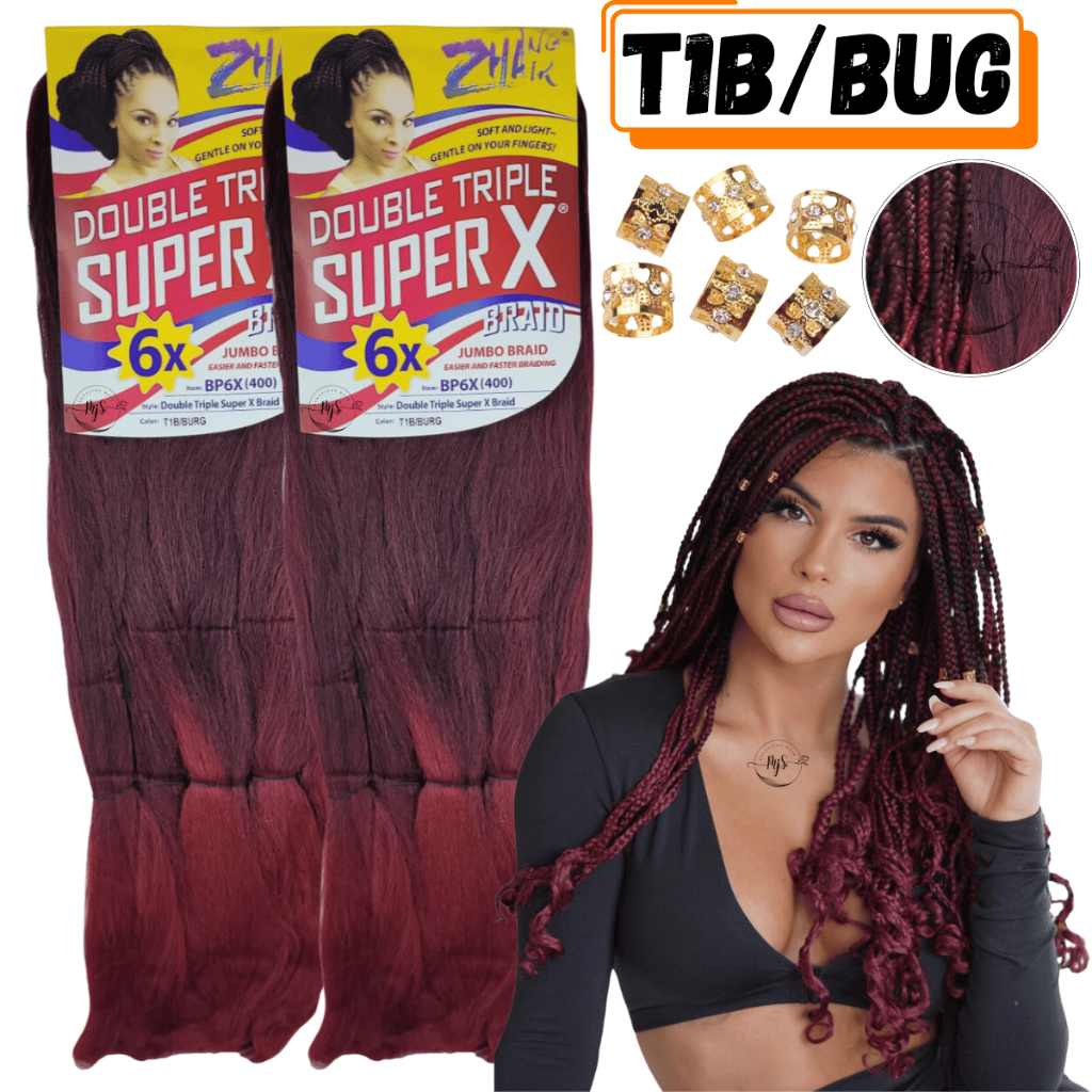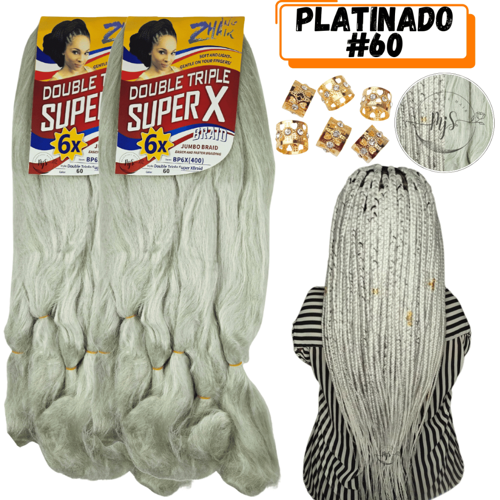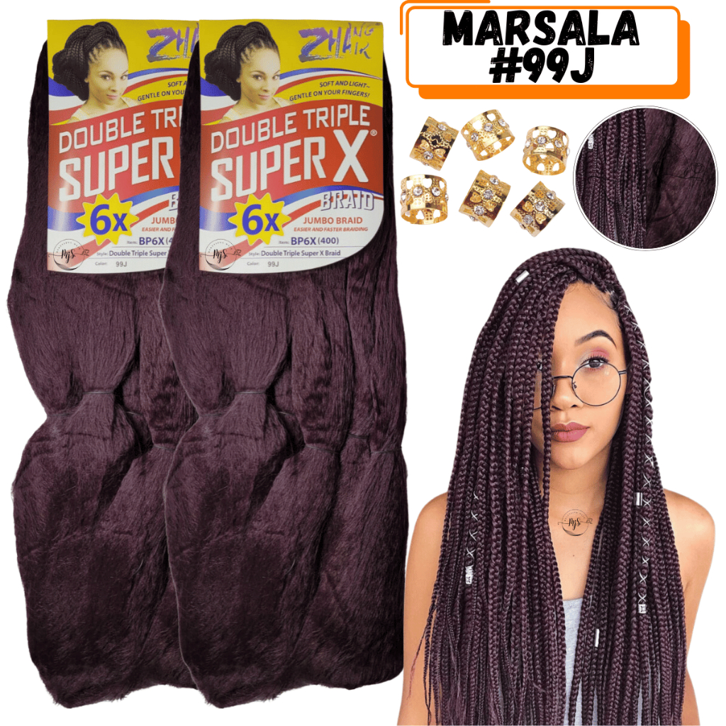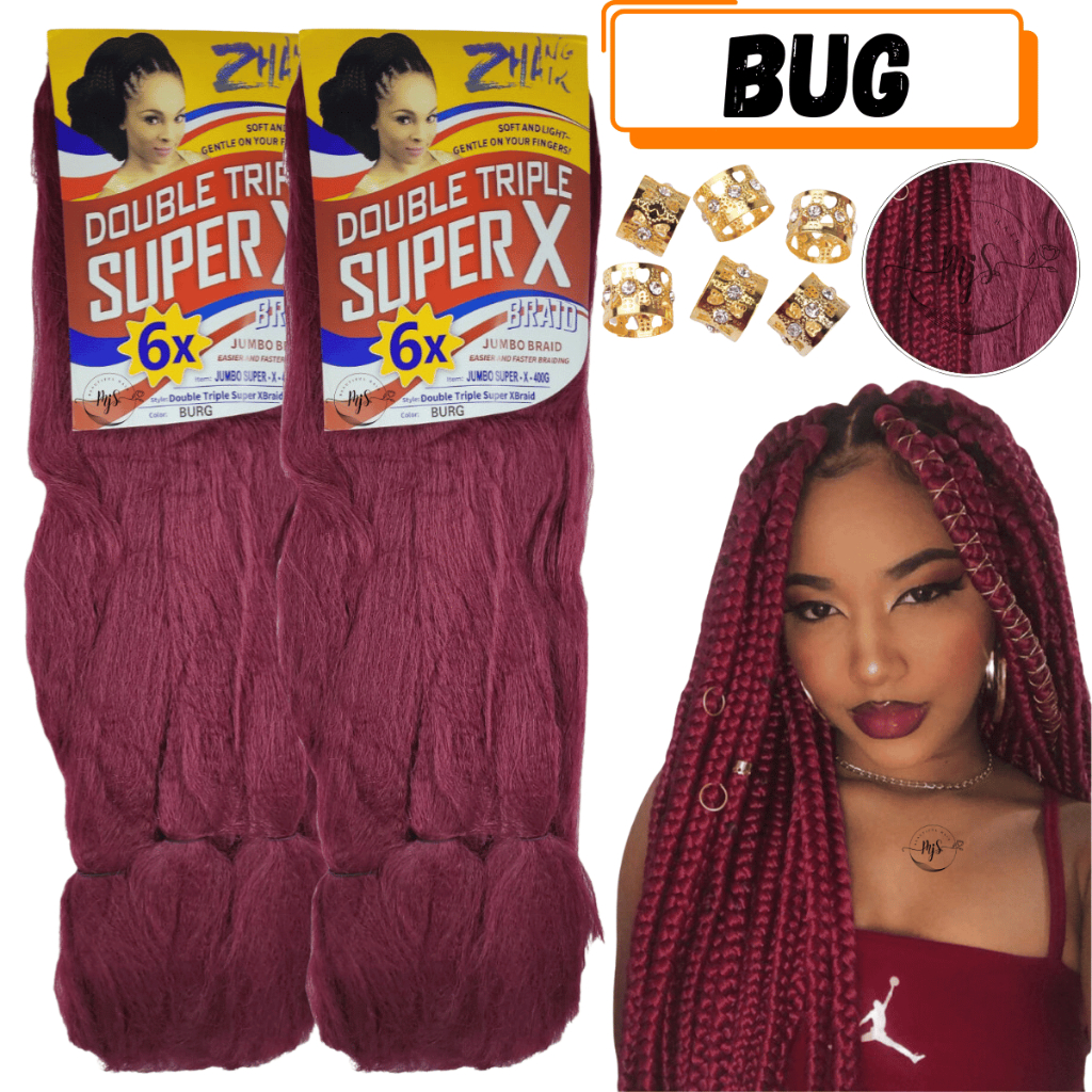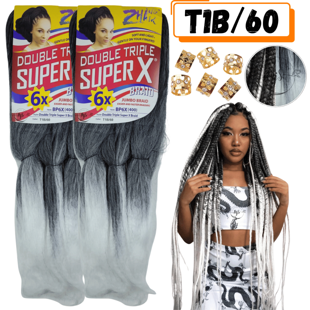 Kit 2 Cabelos Jumbo Jumbão Para Tranças Kanekalon Super X Fibra Especial 400 Gramas + Anéis