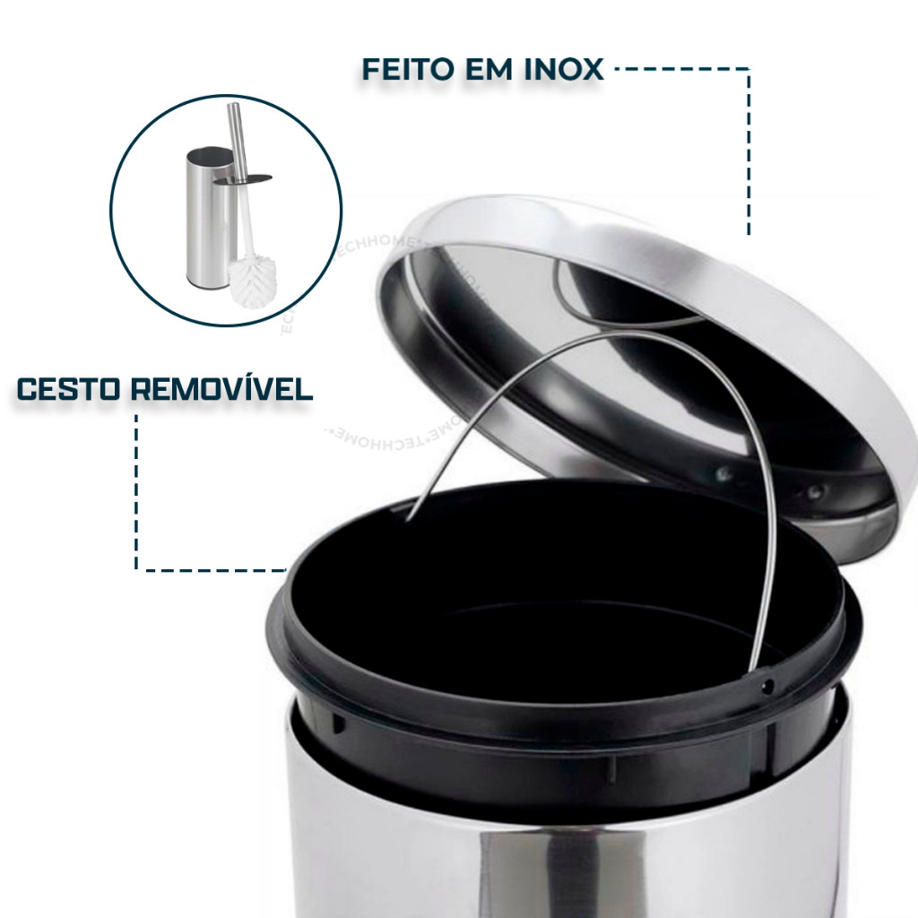 Lixeira 3 litros Inox Escova Sanitária Inox para Banheiro