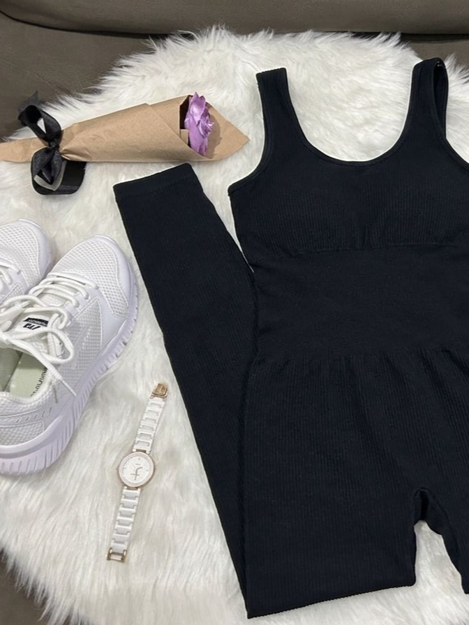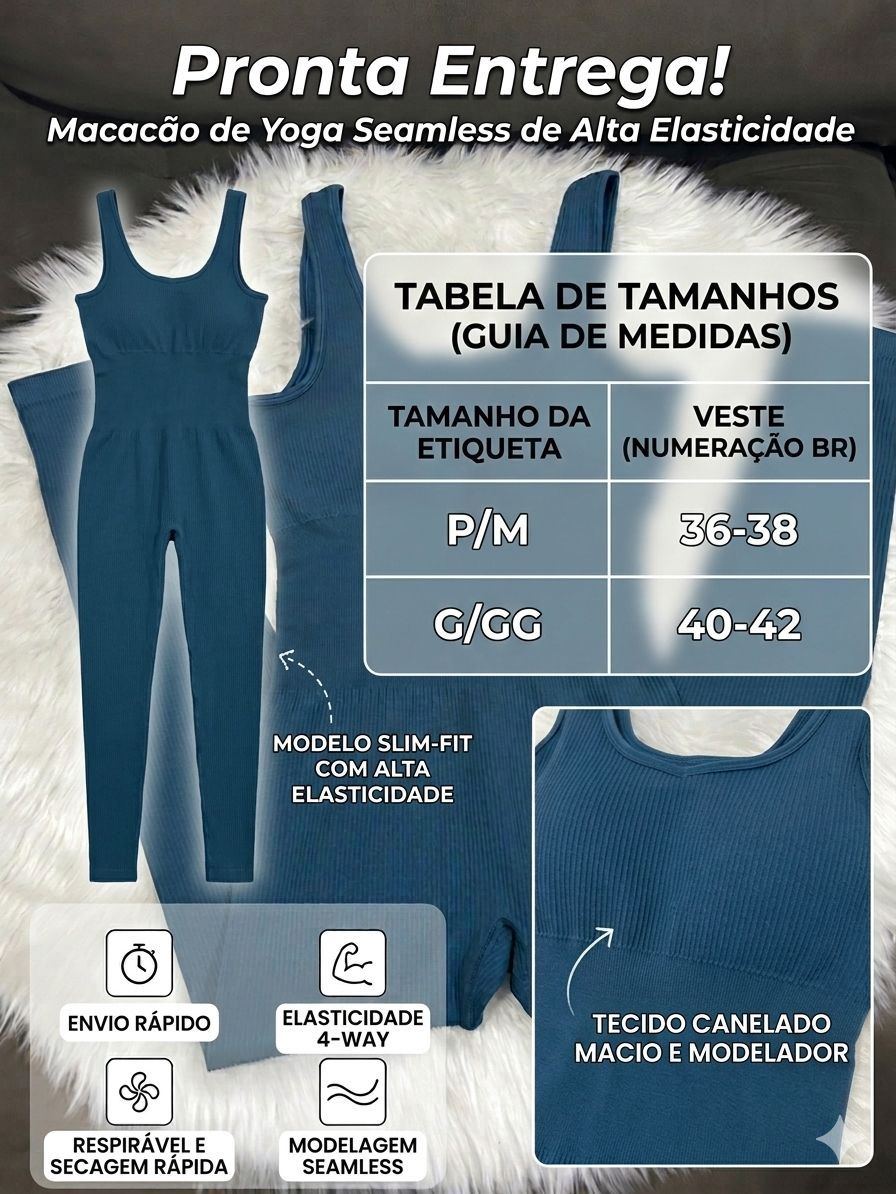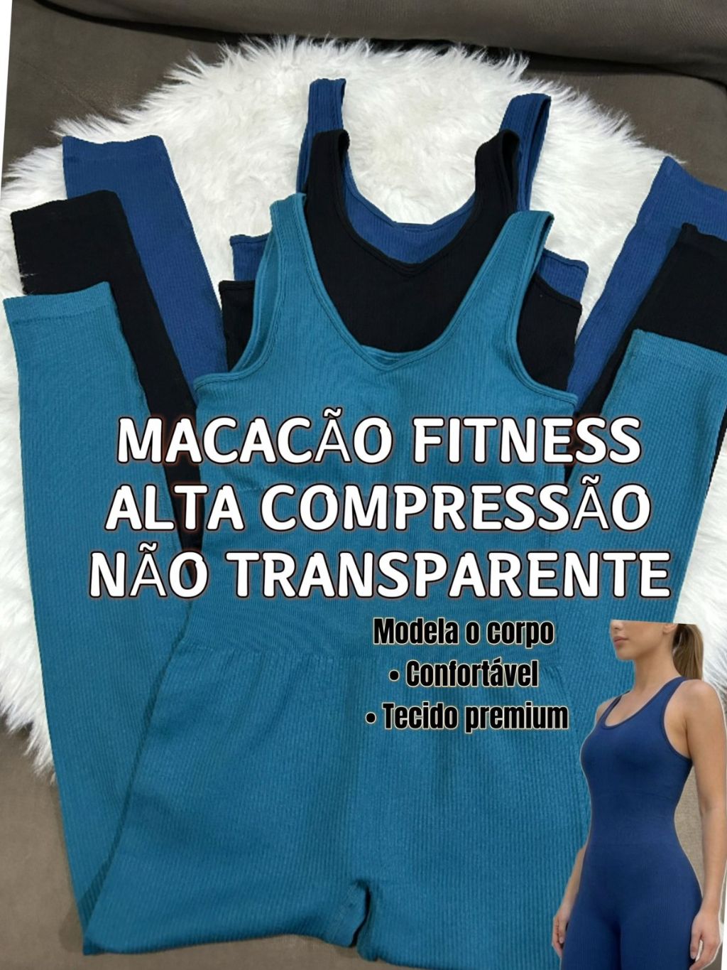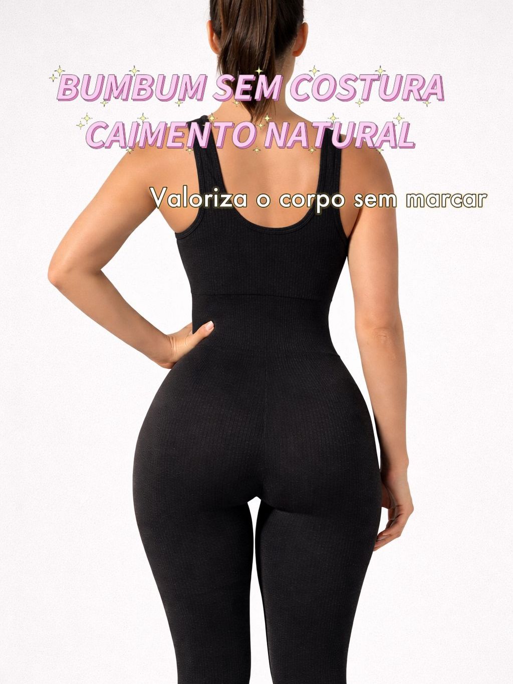 Macacão Fitness Feminino Poliamida Cintura Alta Compressão Não Transparente com Bojo Removível
