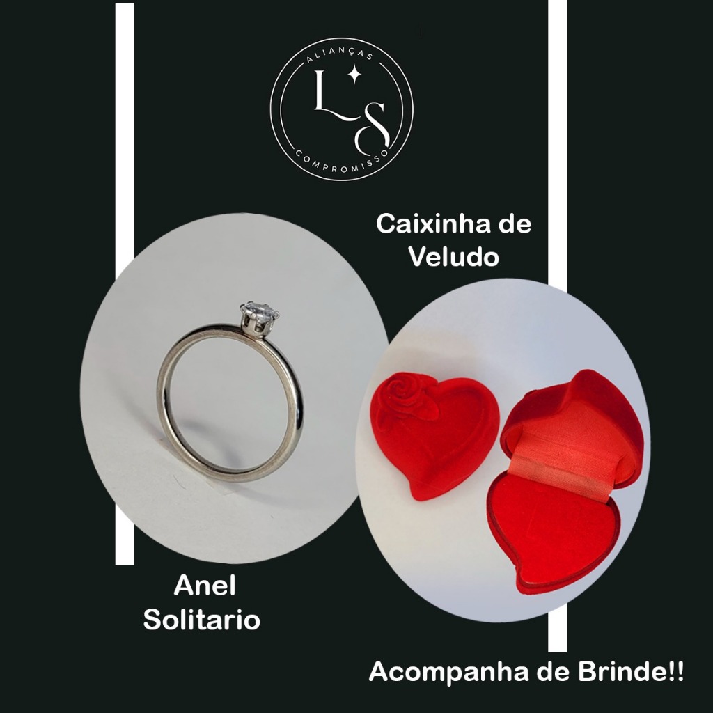 Par Alianças Prata Namoro concava 4mm+Anel solitario de brinde+caixinha brinde Envio imediat