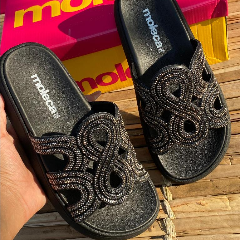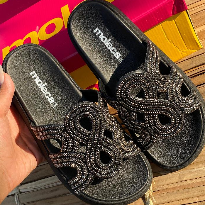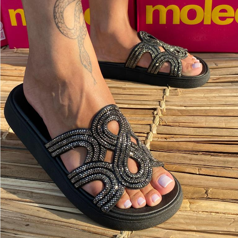 Sandália Feminina Papete Strass Plataforma Moleca 5469134