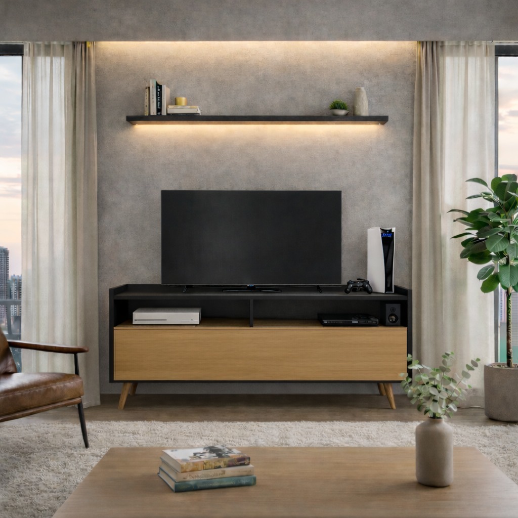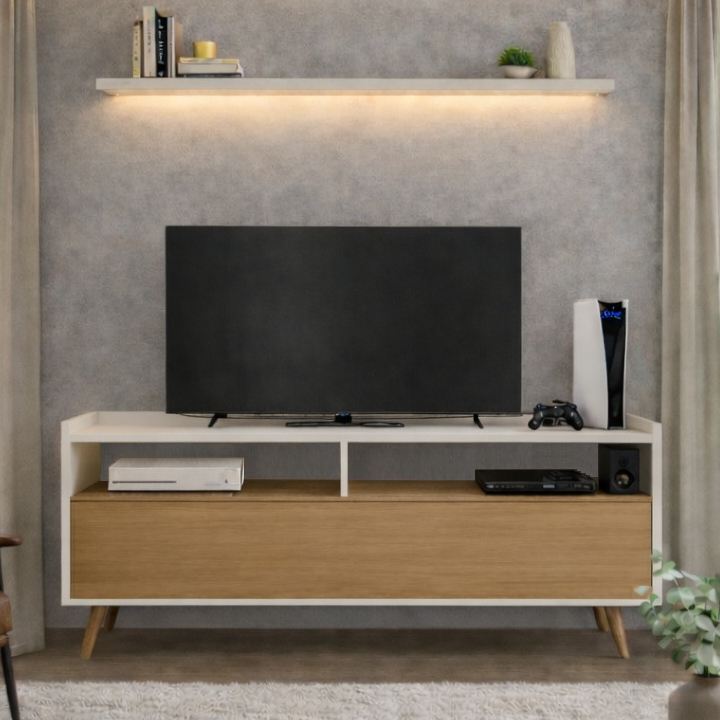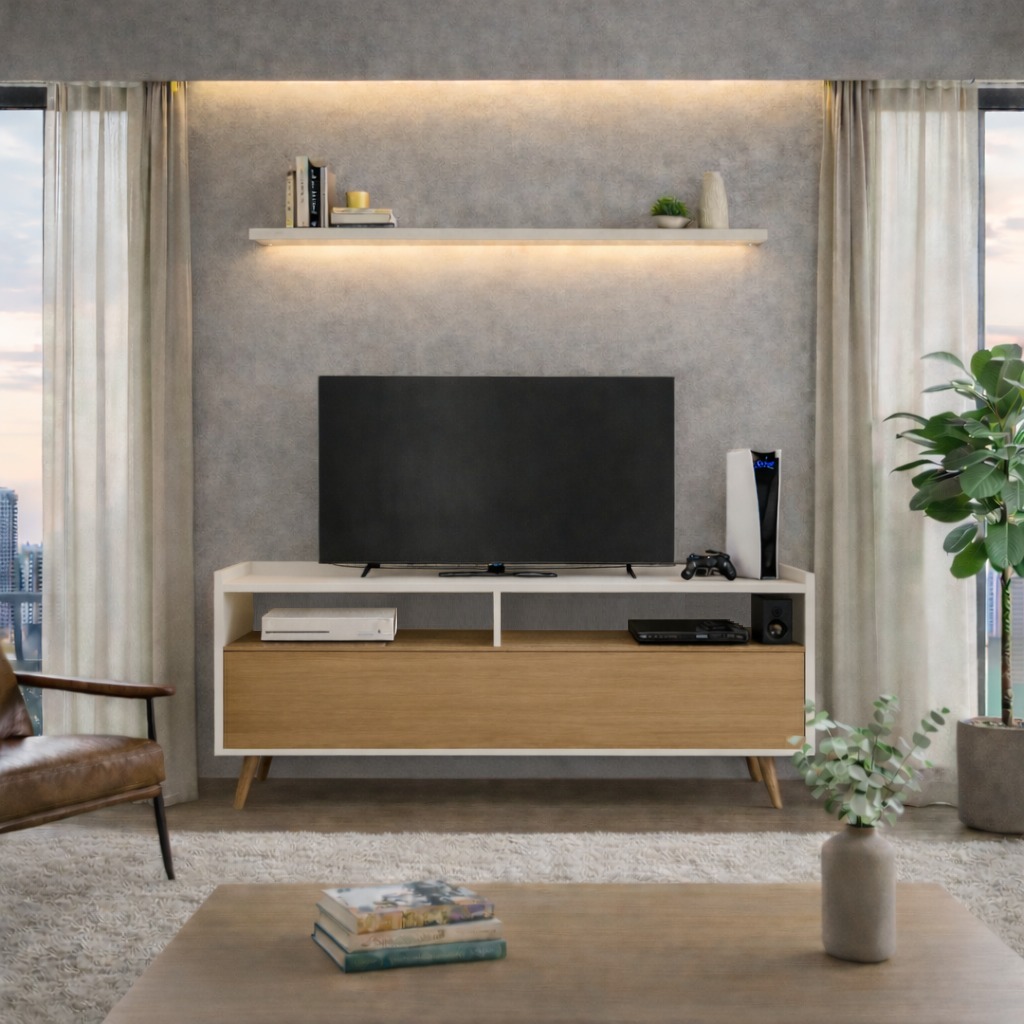 Rack Milano E&A TV Sala com Pés Retrô 1 Gaveteiro - Cores