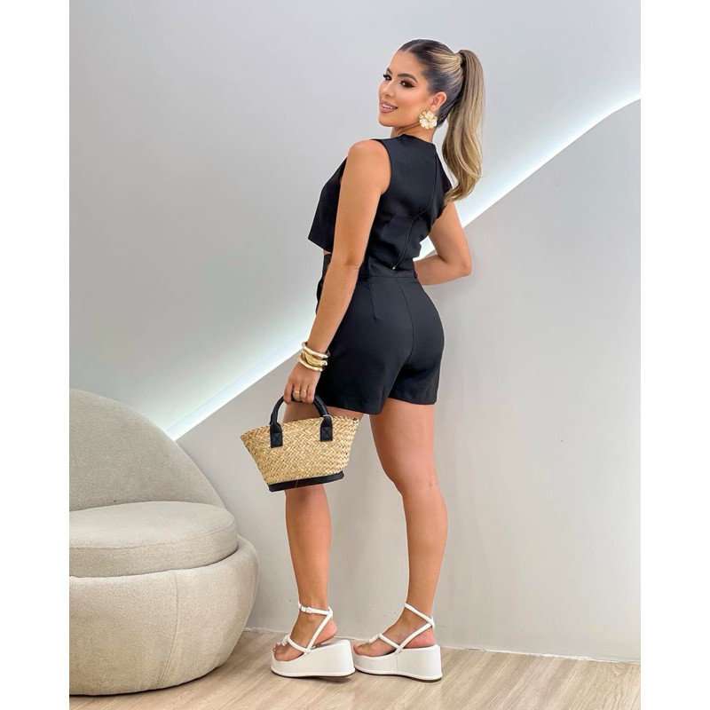 Conjunto Crepe de Alfaiataria Short Saia e Croped com Ziper
