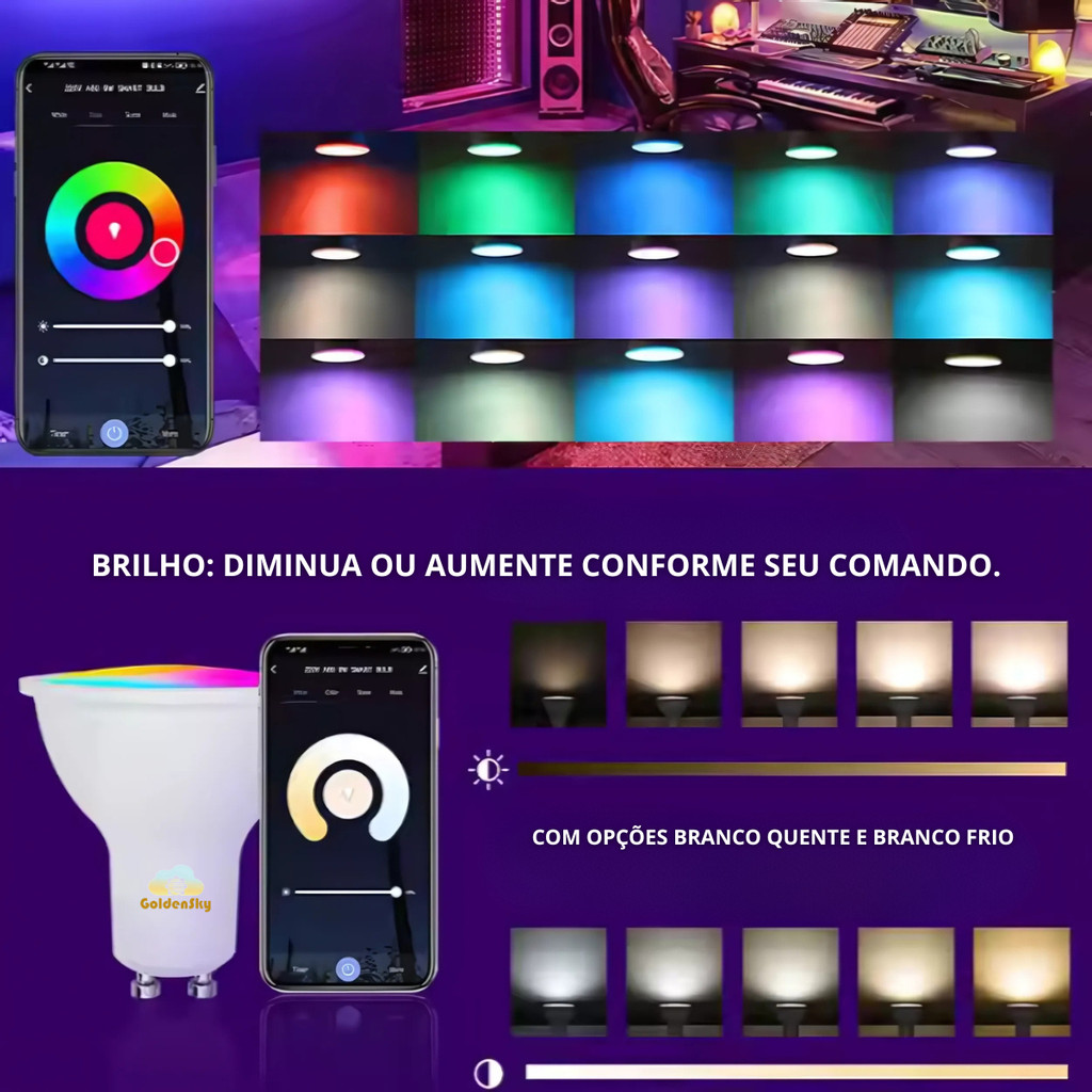 Lâmpada Inteligente GU10 RGB Wi-Fi Spot Compatível com Alexa Google Controle por App Tuya Smart Life