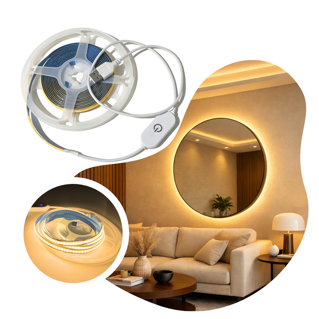 Fita Led 320 Cob 2m ou 3m 5v Usb Branco Quente 3000k Tv Pc Carro
