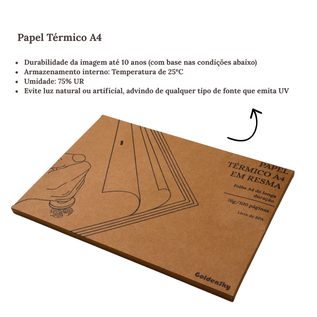 Bloco 100 Folhas A4 Goldensky Papel Térmico 21x30 Branco Bobina