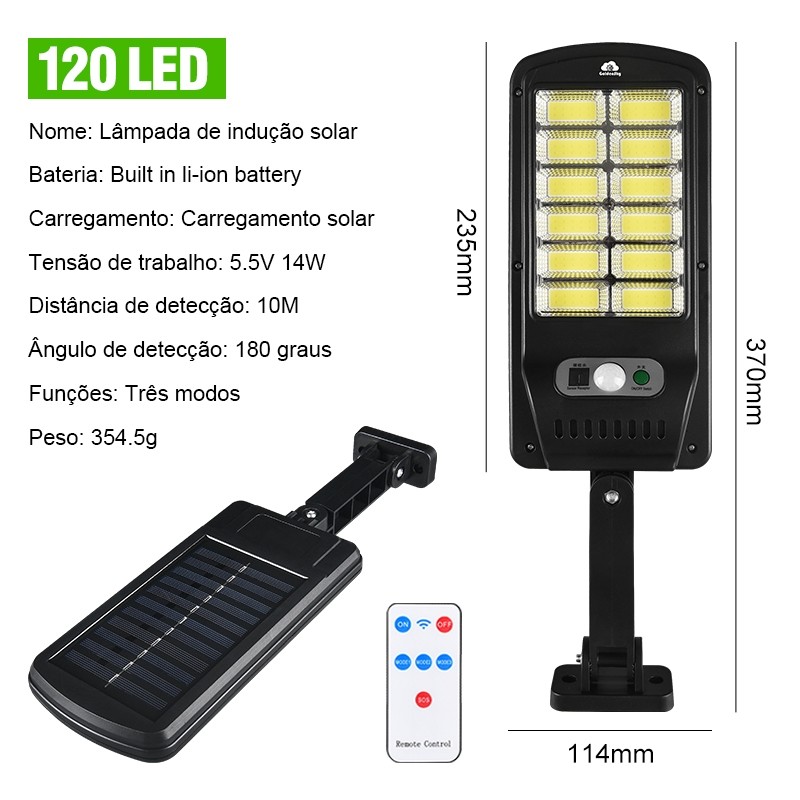 Luminária Solar Poste Rua Refletor 200W Sensor Movimento Prova D' Água Controle
