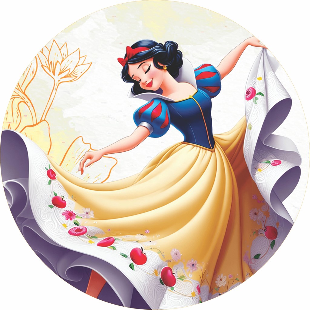 Painel Princesas Branca de Neve Redondo 150x150 e 50x50cm | Festa Aniversário | Tecido Premium + Frete Grátis