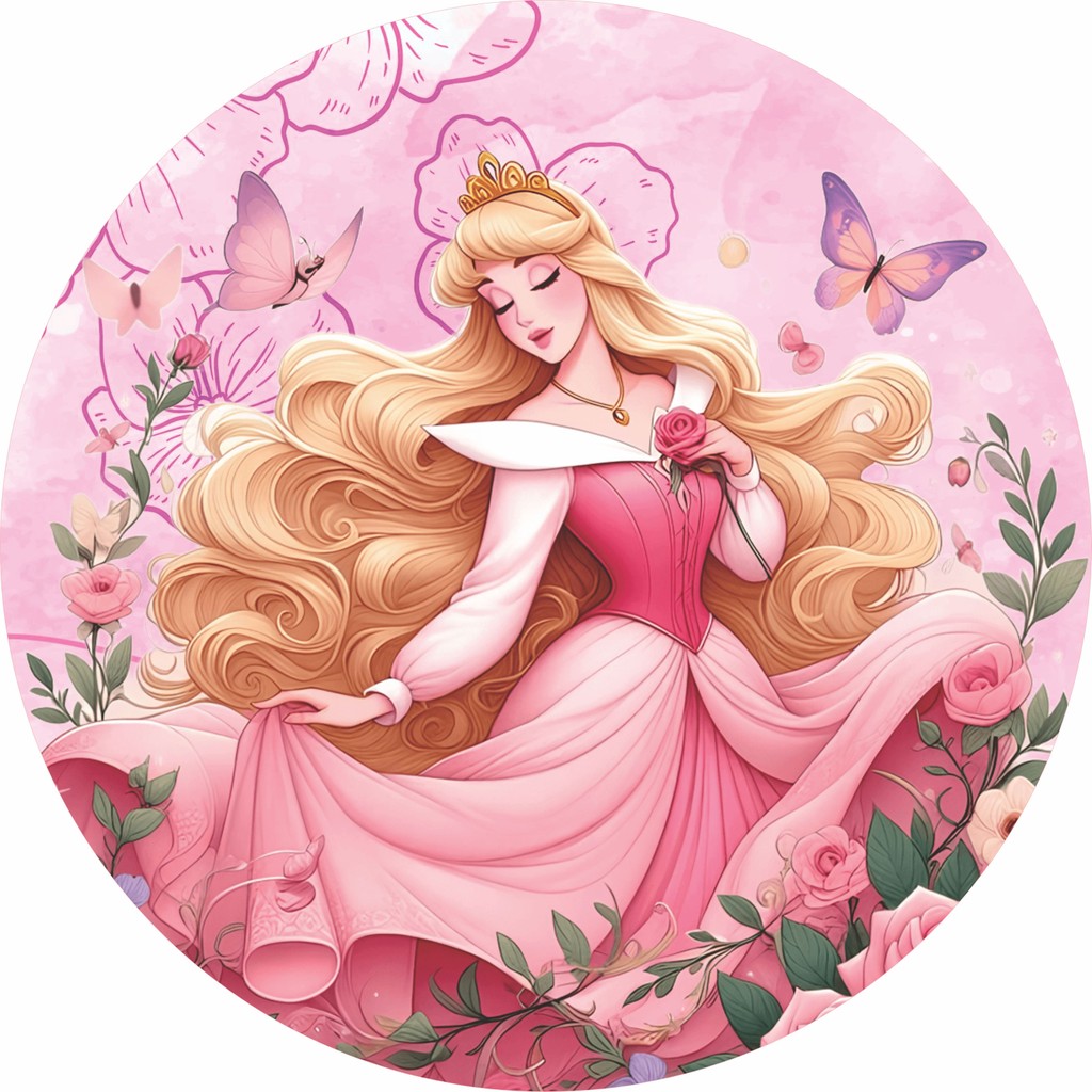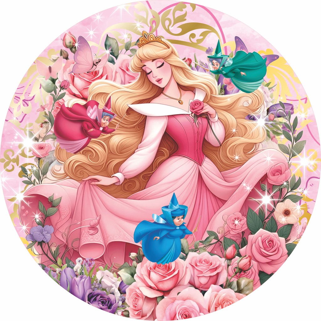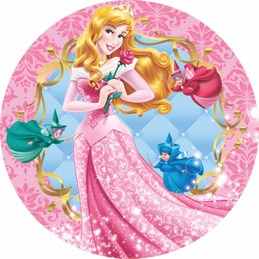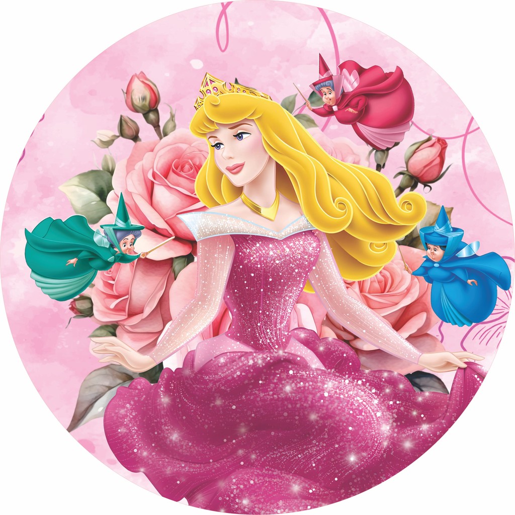 Painel Redondo Aurora Princesa Bela Adormecida 150x150cm e 50x50cm | Decoração Festa Infantil | Tecido Premium