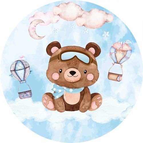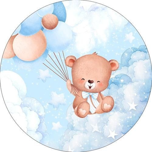 Capa Para Painel Festa Ursinho e Ursinha Baloeiro infantil Chá Fralda e Bebê Tecido 1,50x1,50 e 50x50cm Vários Modelos
