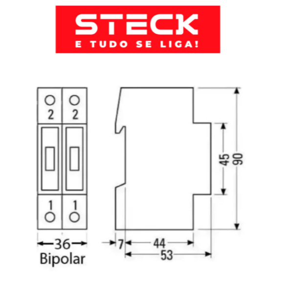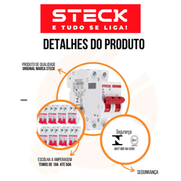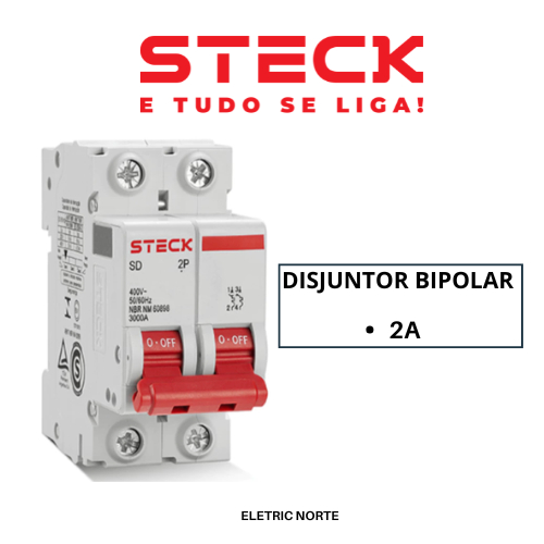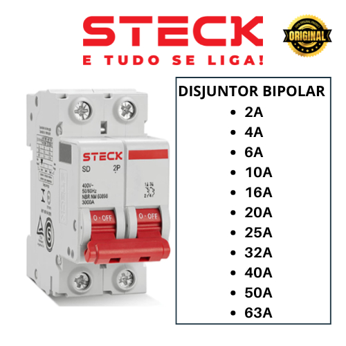 Disjuntor STECK Bipolar Bifasico 2A | 4A| 6A |10A | 16A | 20A | 25A | 32A | 40A | 50A | 63A STECK