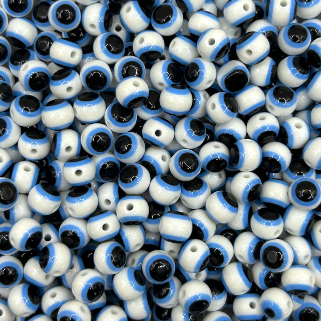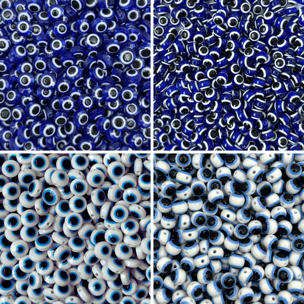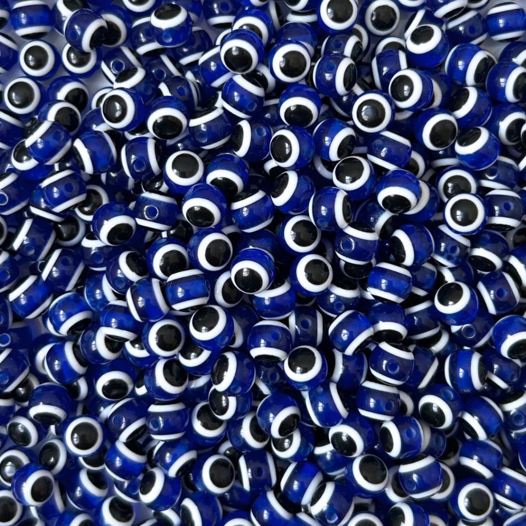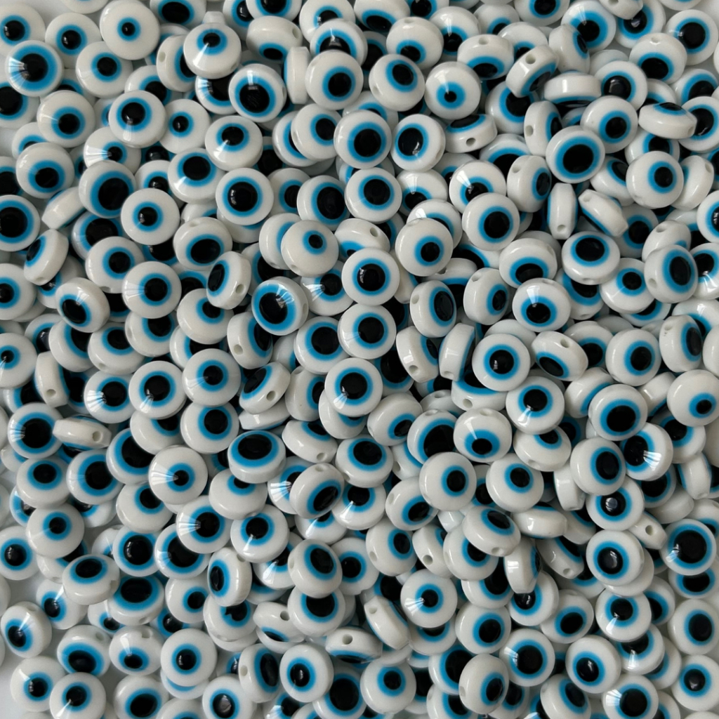 20/50/100 unidades Miçanga Olho Grego 8mm com Furo Passante