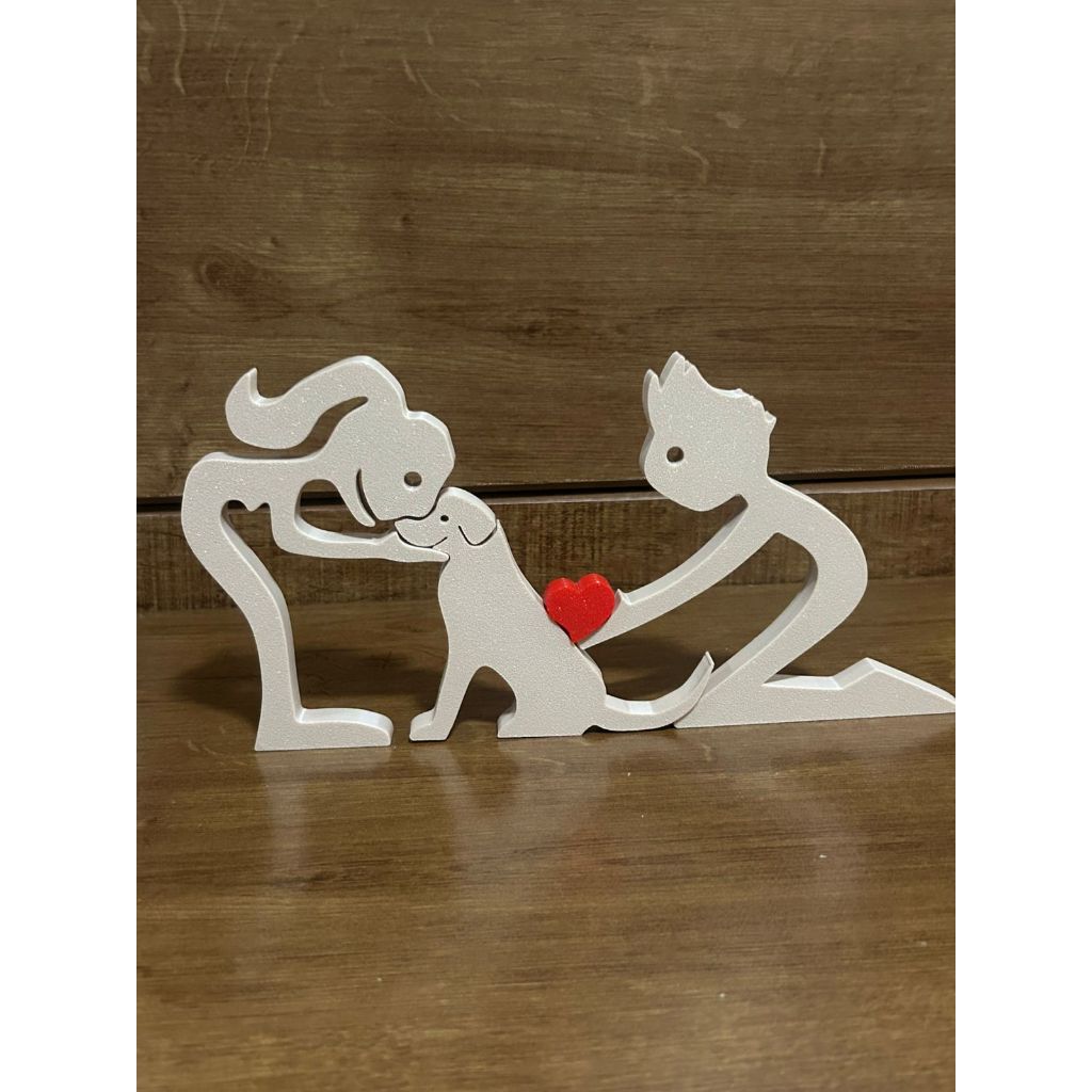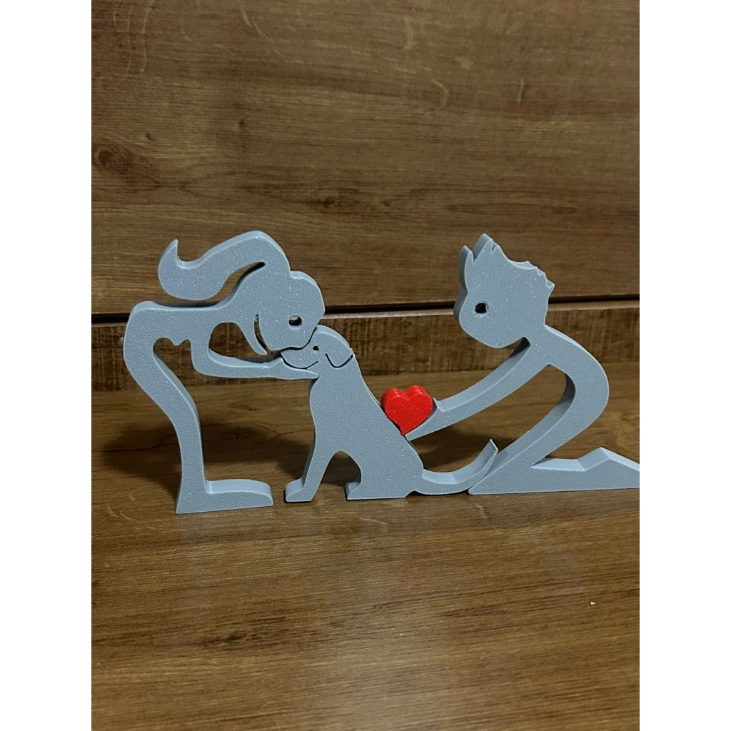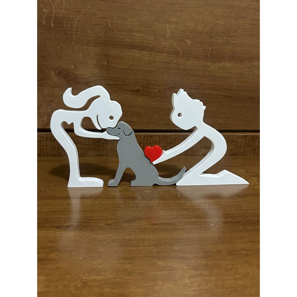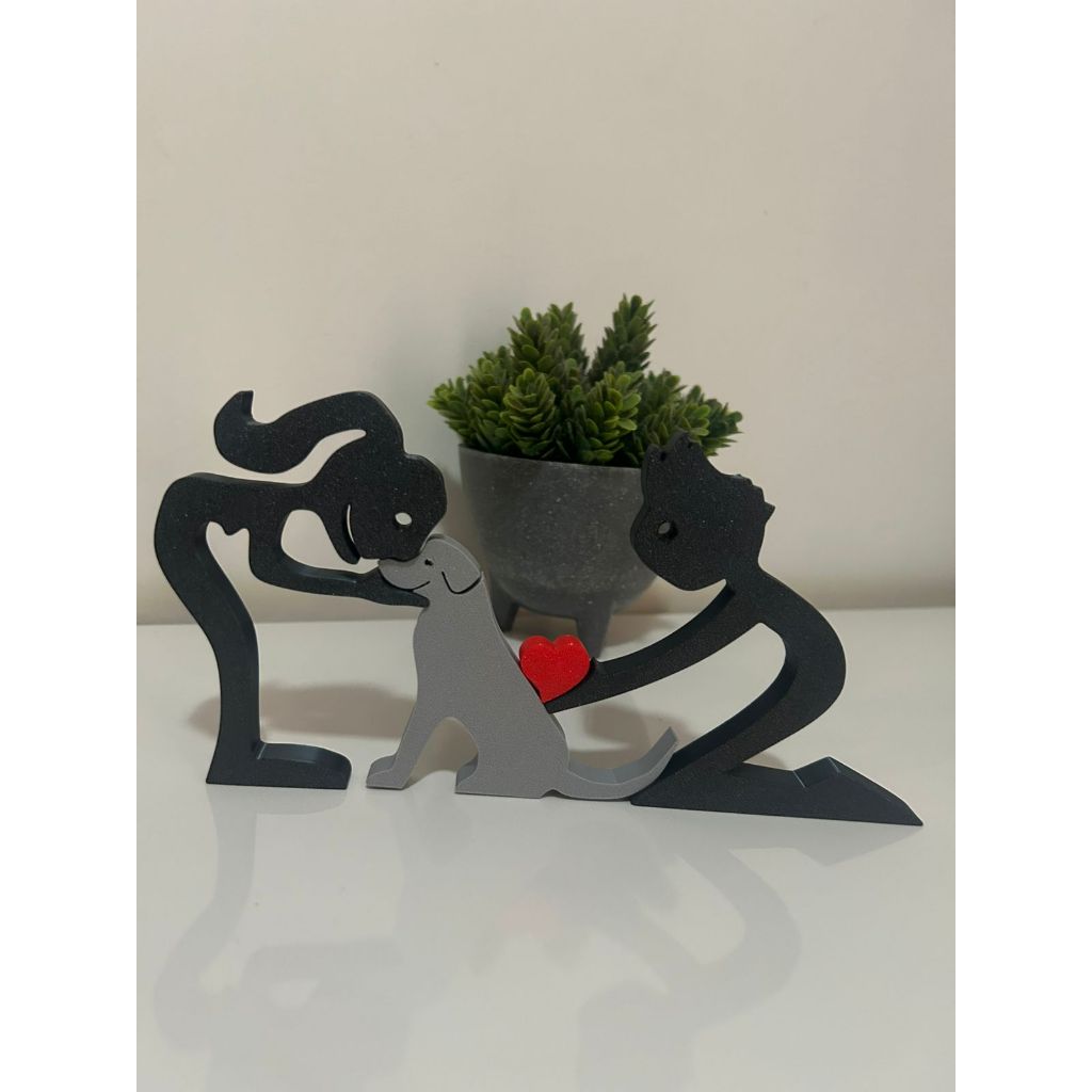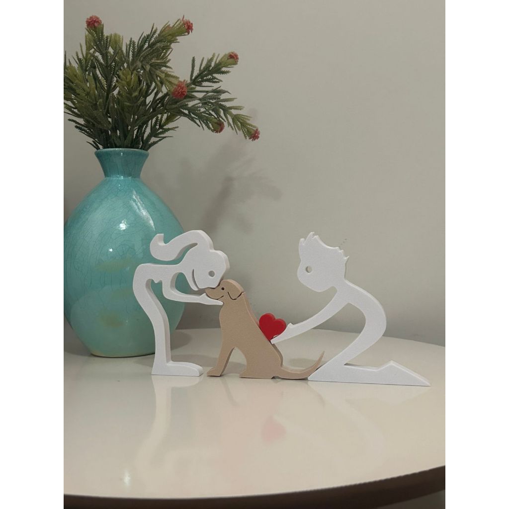 Escultura Casal coração e Cachorro - Humano e Cachorro - Decoração Pet De Mesa - Quarto - Sala