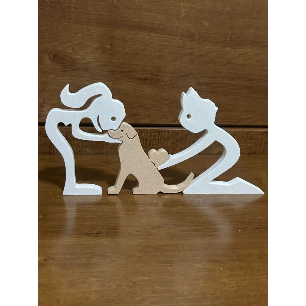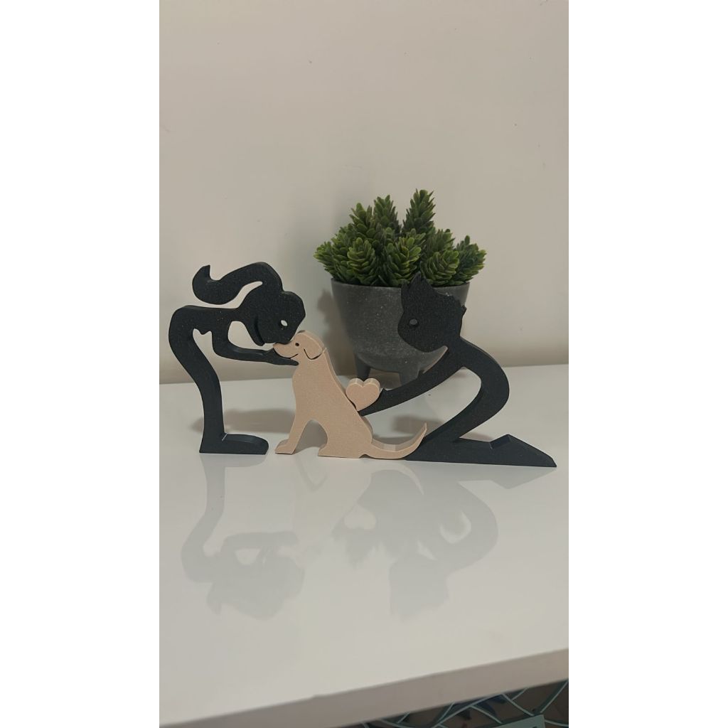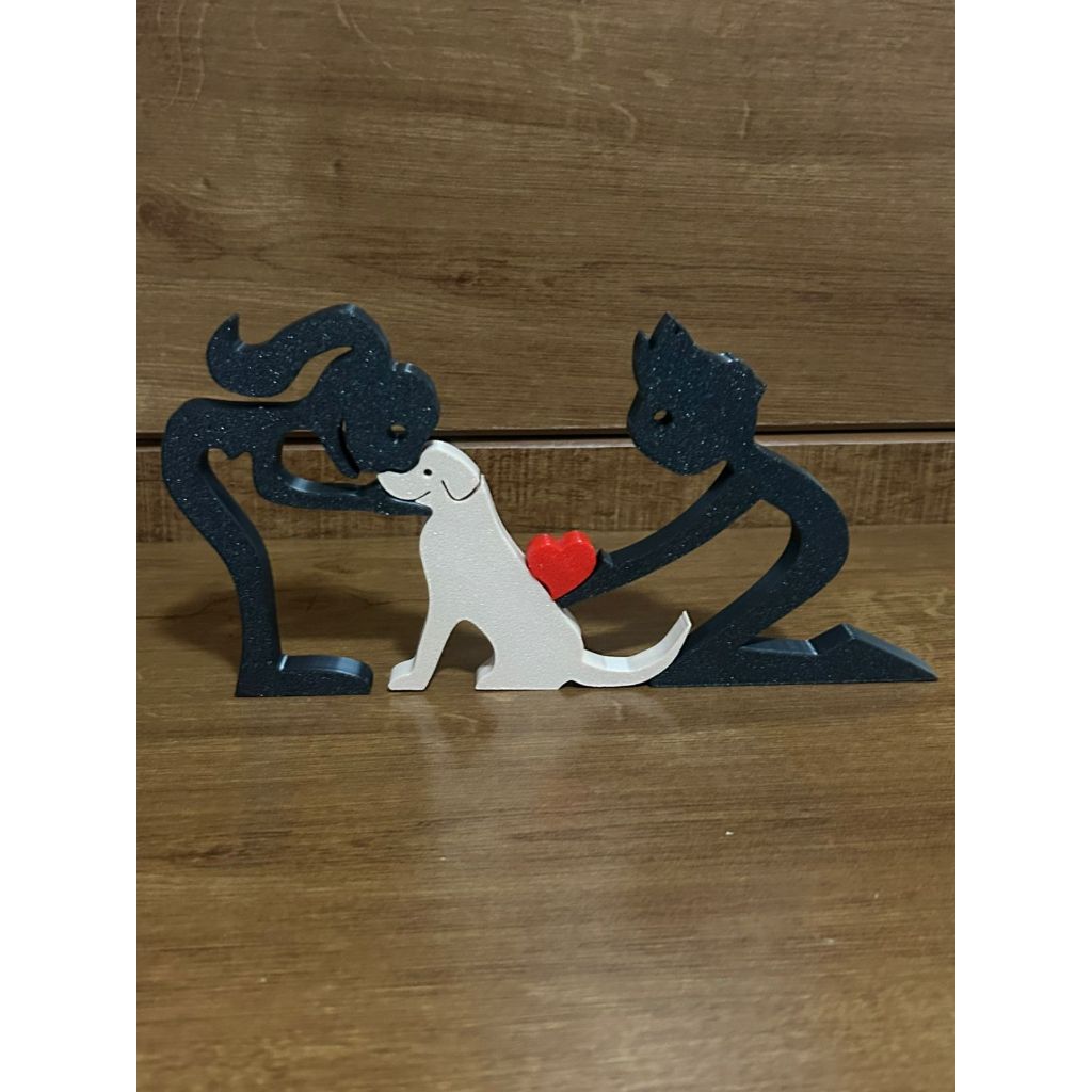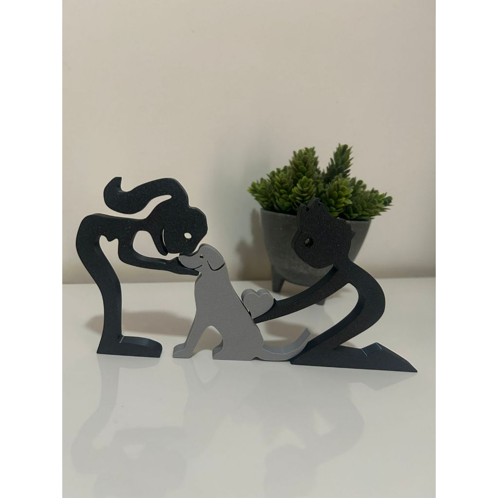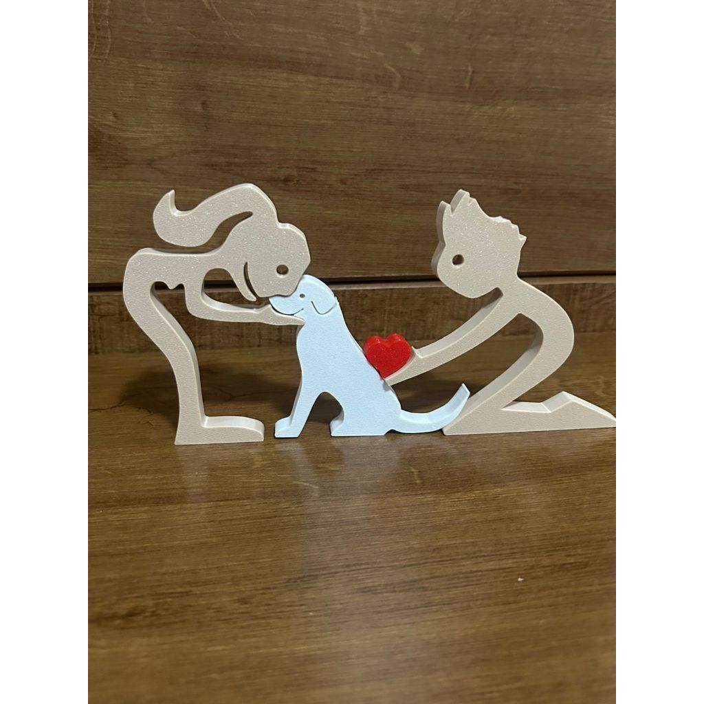 Escultura Casal coração e Cachorro - Humano e Cachorro - Decoração Pet De Mesa - Quarto - Sala