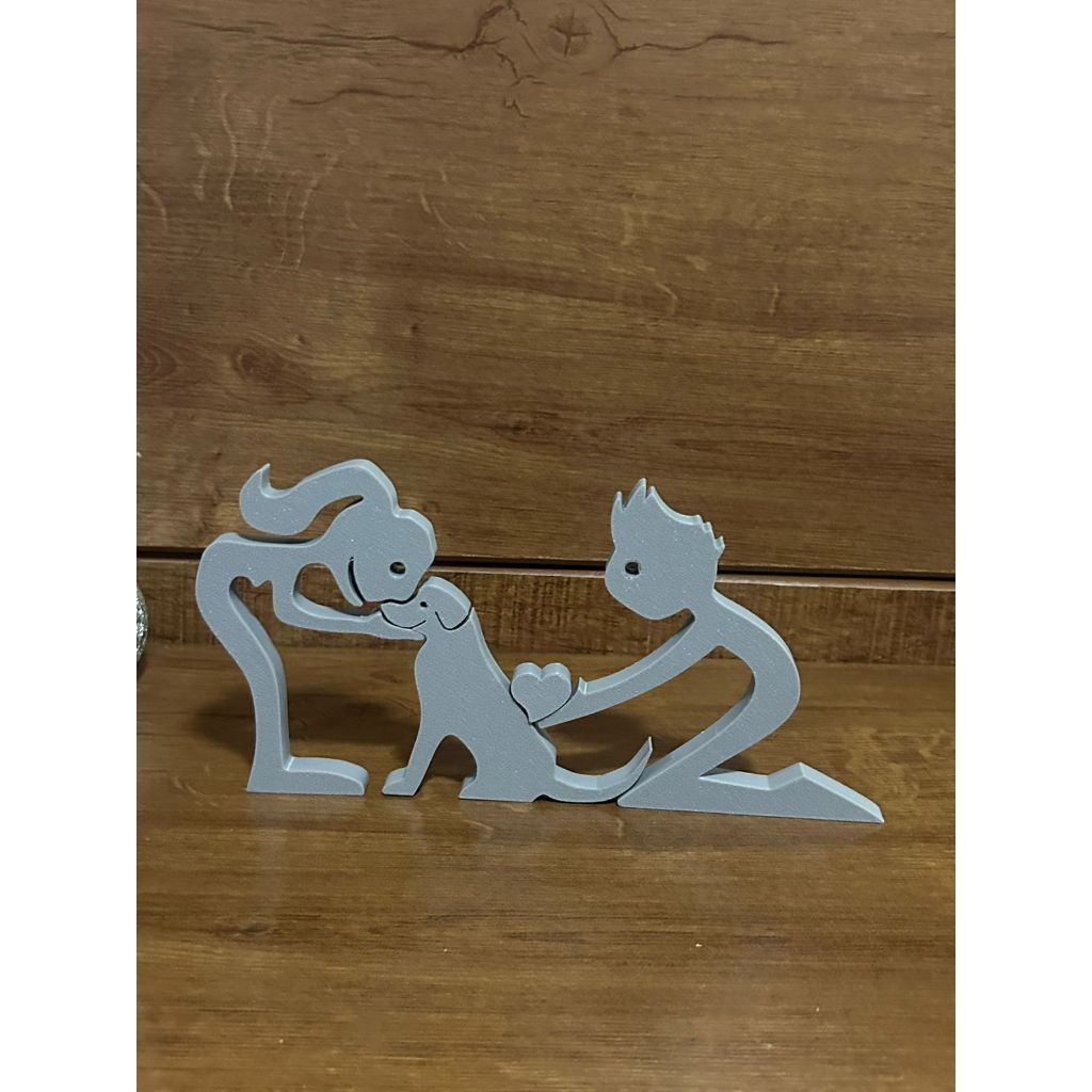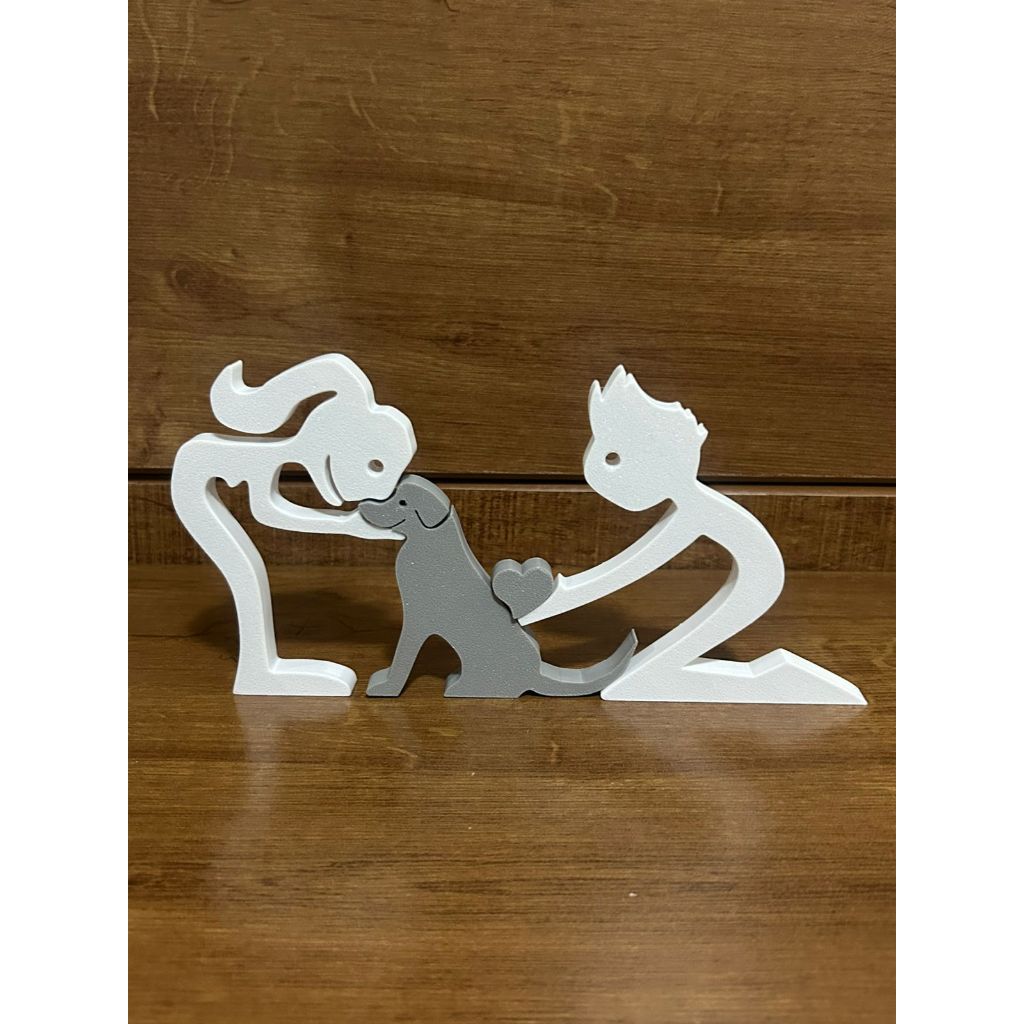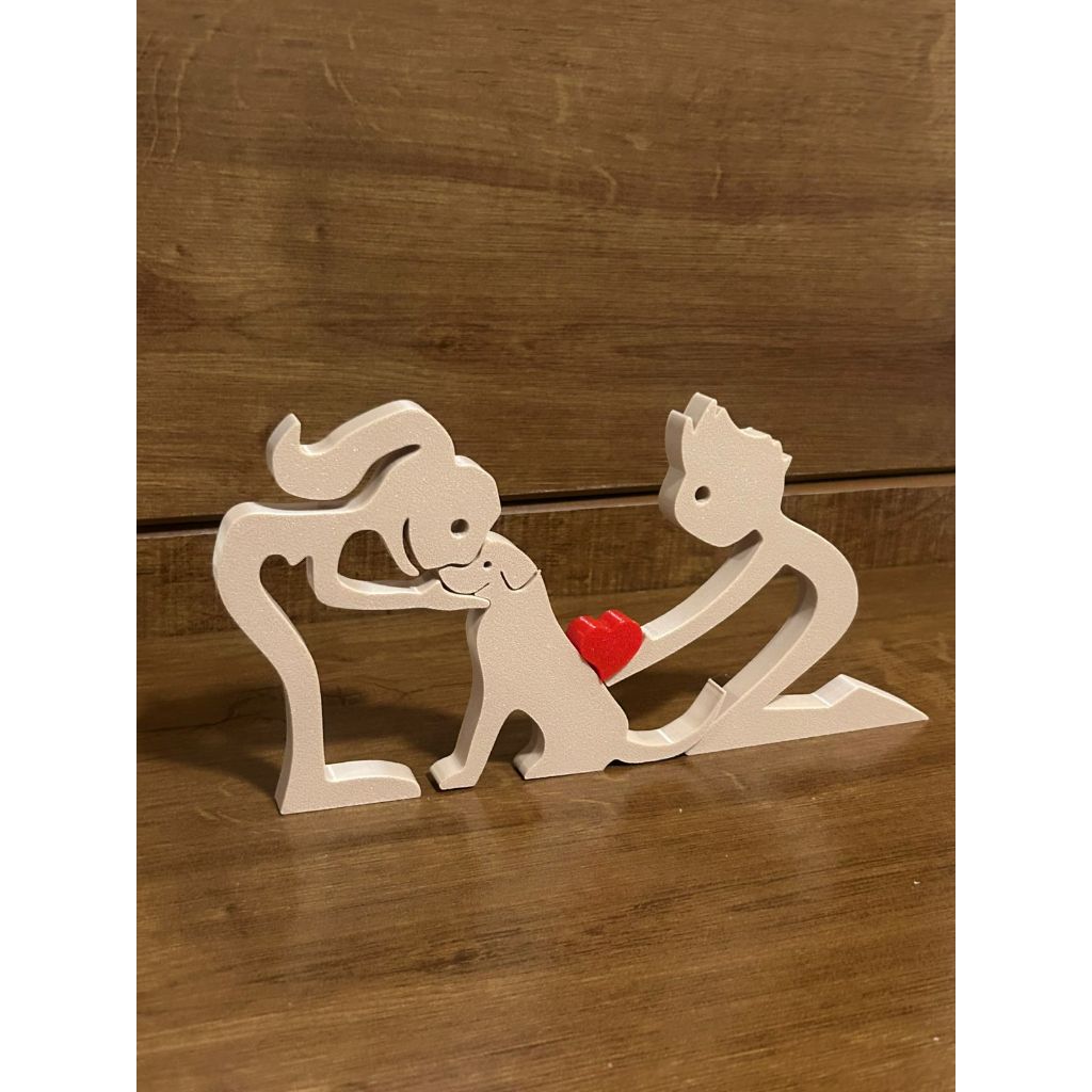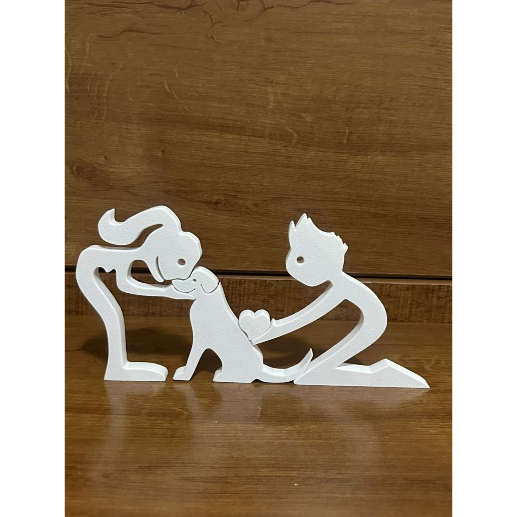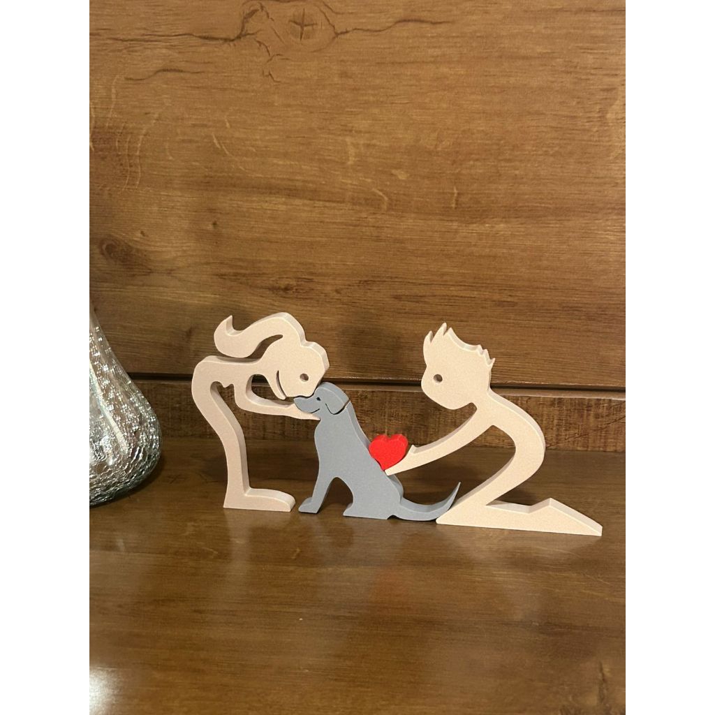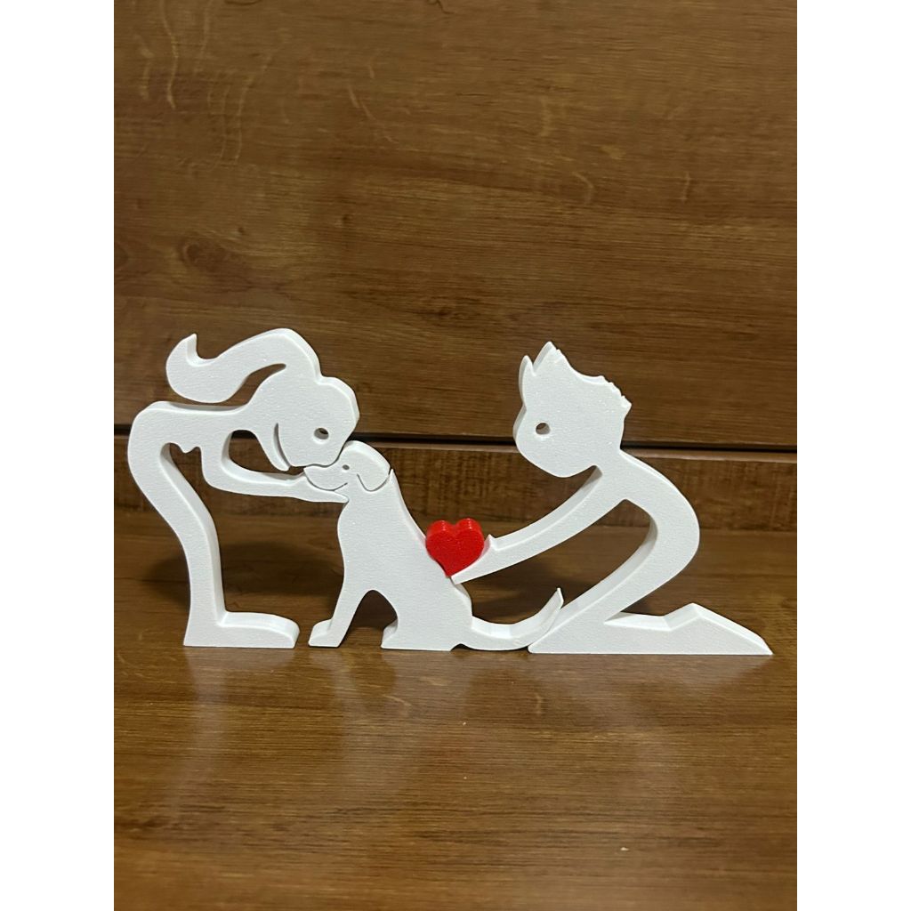 Escultura Casal coração e Cachorro - Humano e Cachorro - Decoração Pet De Mesa - Quarto - Sala
