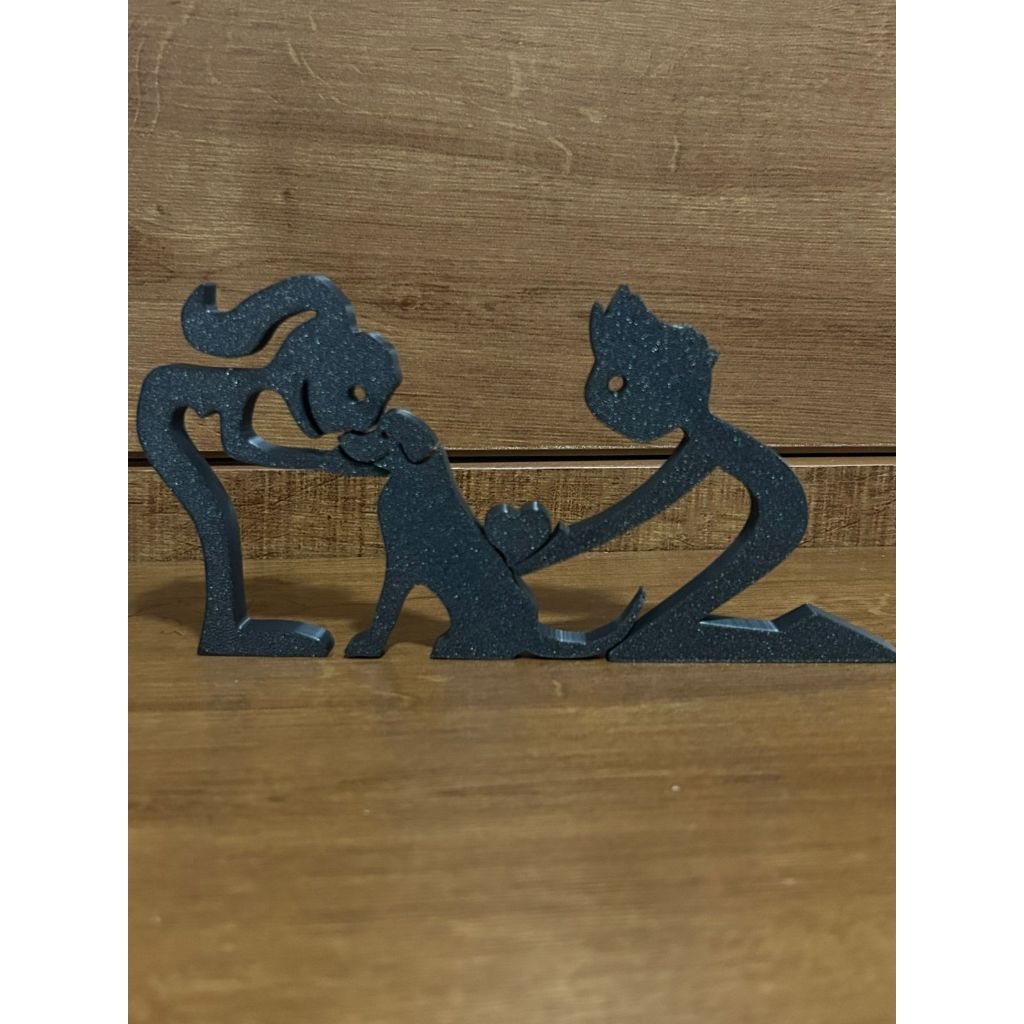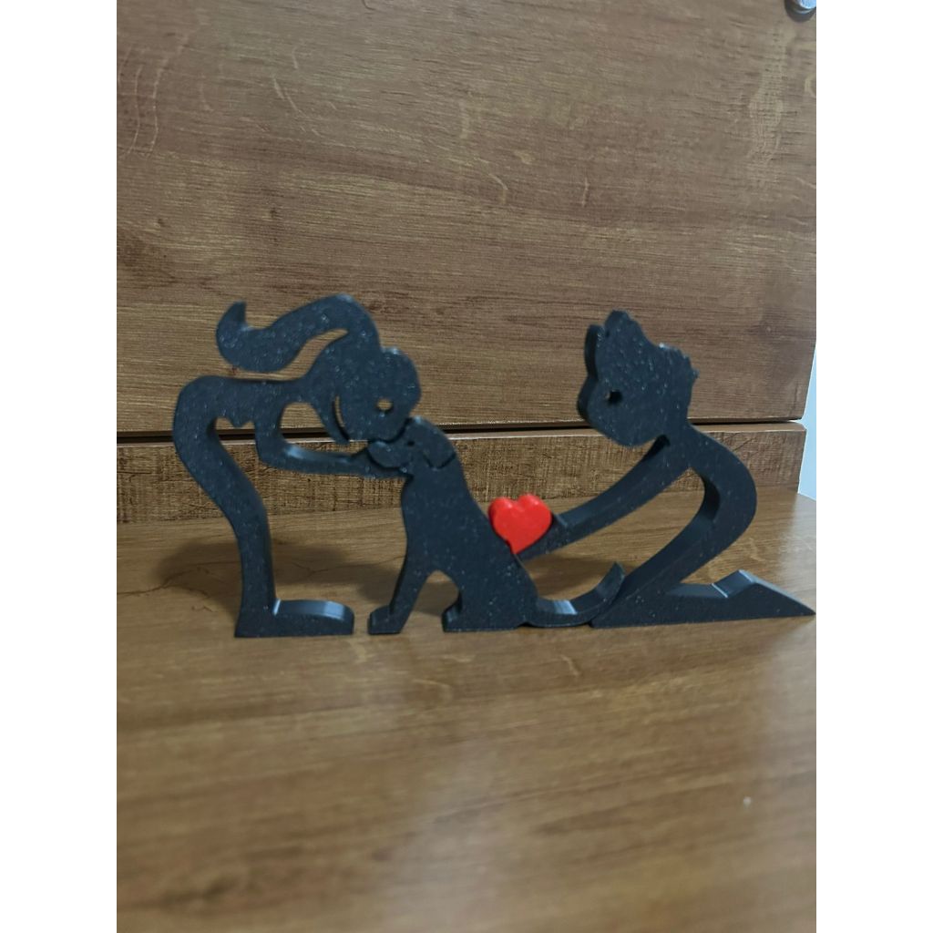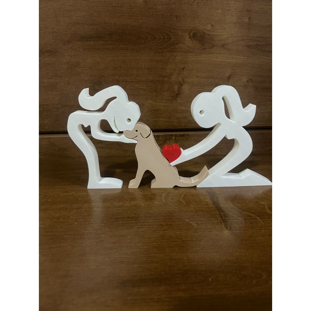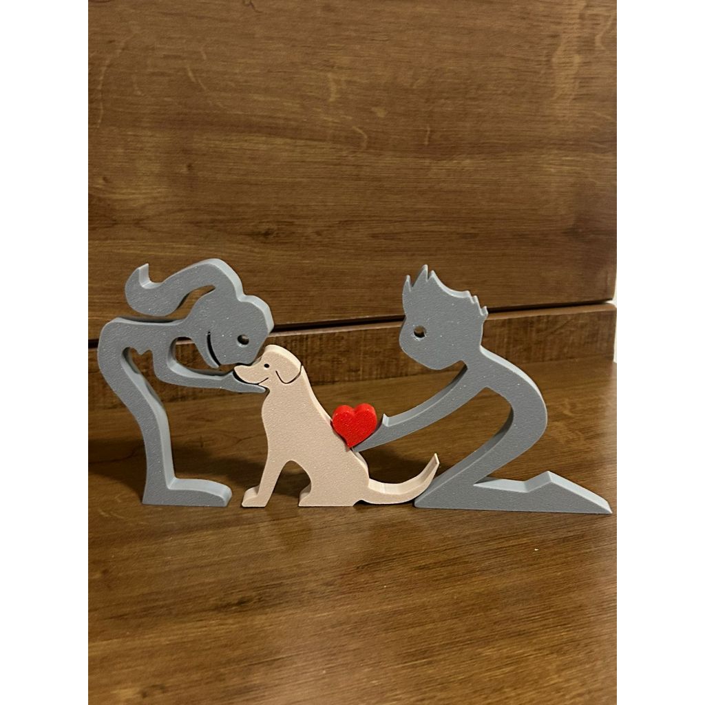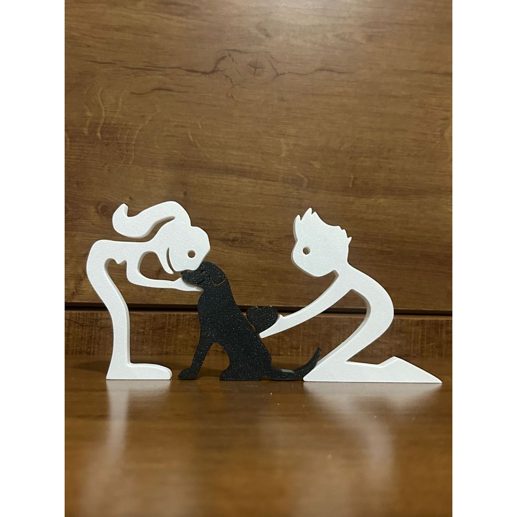 Escultura Casal coração e Cachorro - Humano e Cachorro - Decoração Pet De Mesa - Quarto - Sala