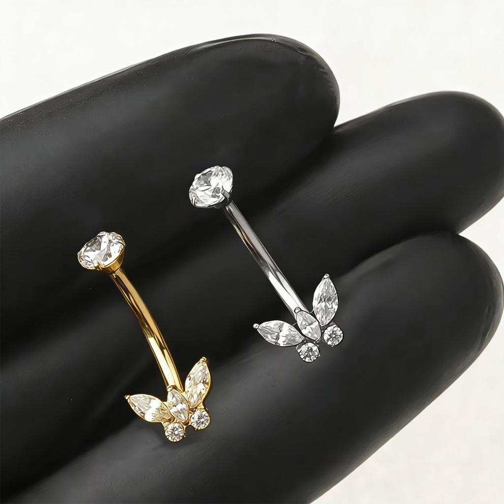 Piercing Umbigo Banana De Titânio Interno Roscado Zircônias Barras Body Jewelry
