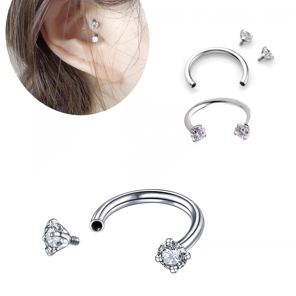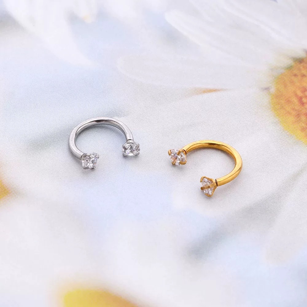 Piercing Boca Ferradura 100% Titânio 2 Zircônias Para Nariz lábio Cartilagem helix Brinco