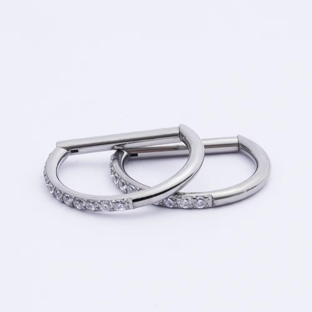 Piercing Meia Argola D-ring Titânio Zircônia Segmento Articulado Nariz, Tragus, Septo, Hélix